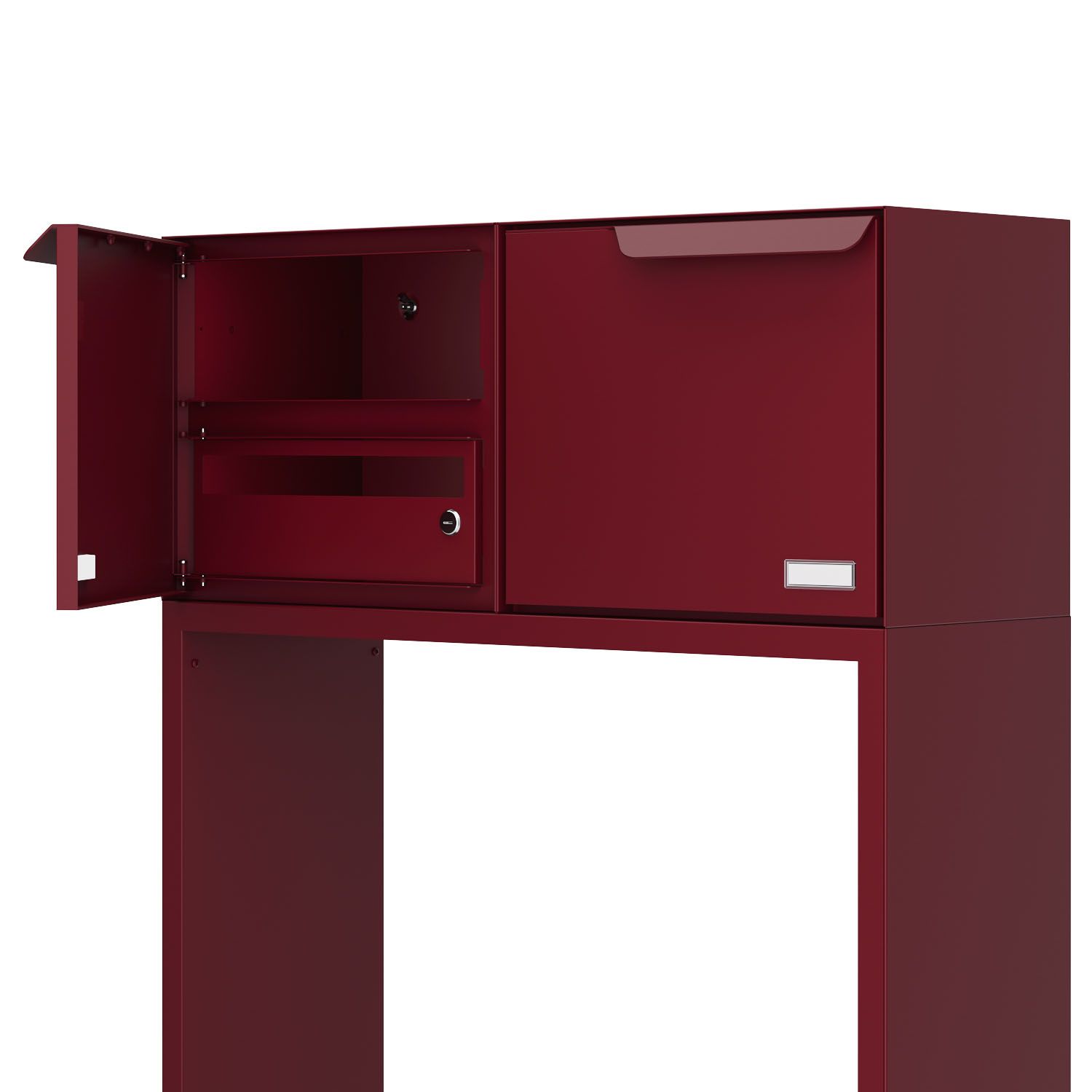 Freistehende Briefkastenanlage für zwei Parteien: Dank der besonders stabilen Standfüße frei platzierbar und auch ohne Erdanker besonders standfest – ein Highlight für jeden Eingangsbereich.