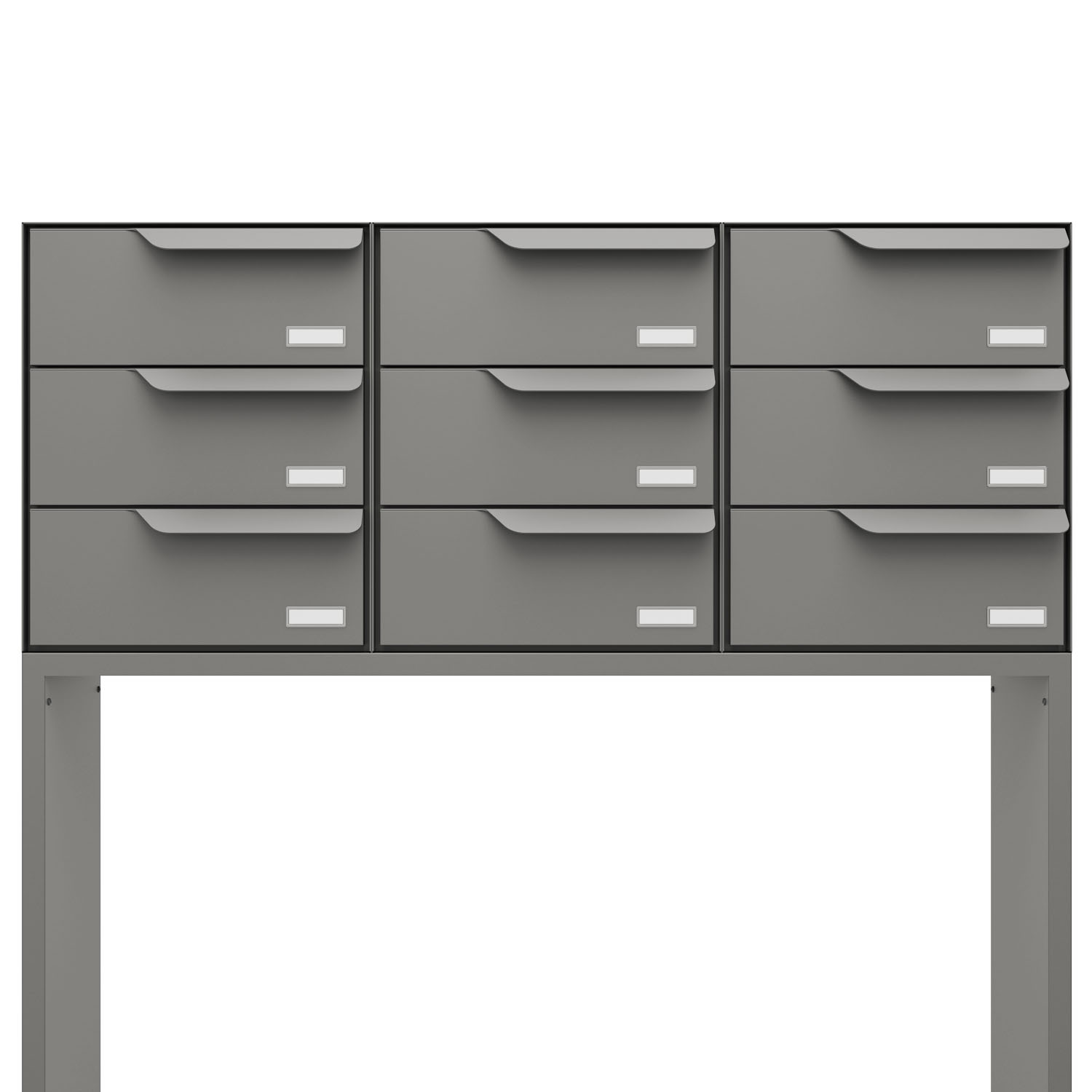 Freistehende Briefkastenanlage für neun Parteien: Dank der besonders stabilen Standfüße frei platzierbar und auch ohne Erdanker besonders standfest – ein Highlight für jeden Eingangsbereich.