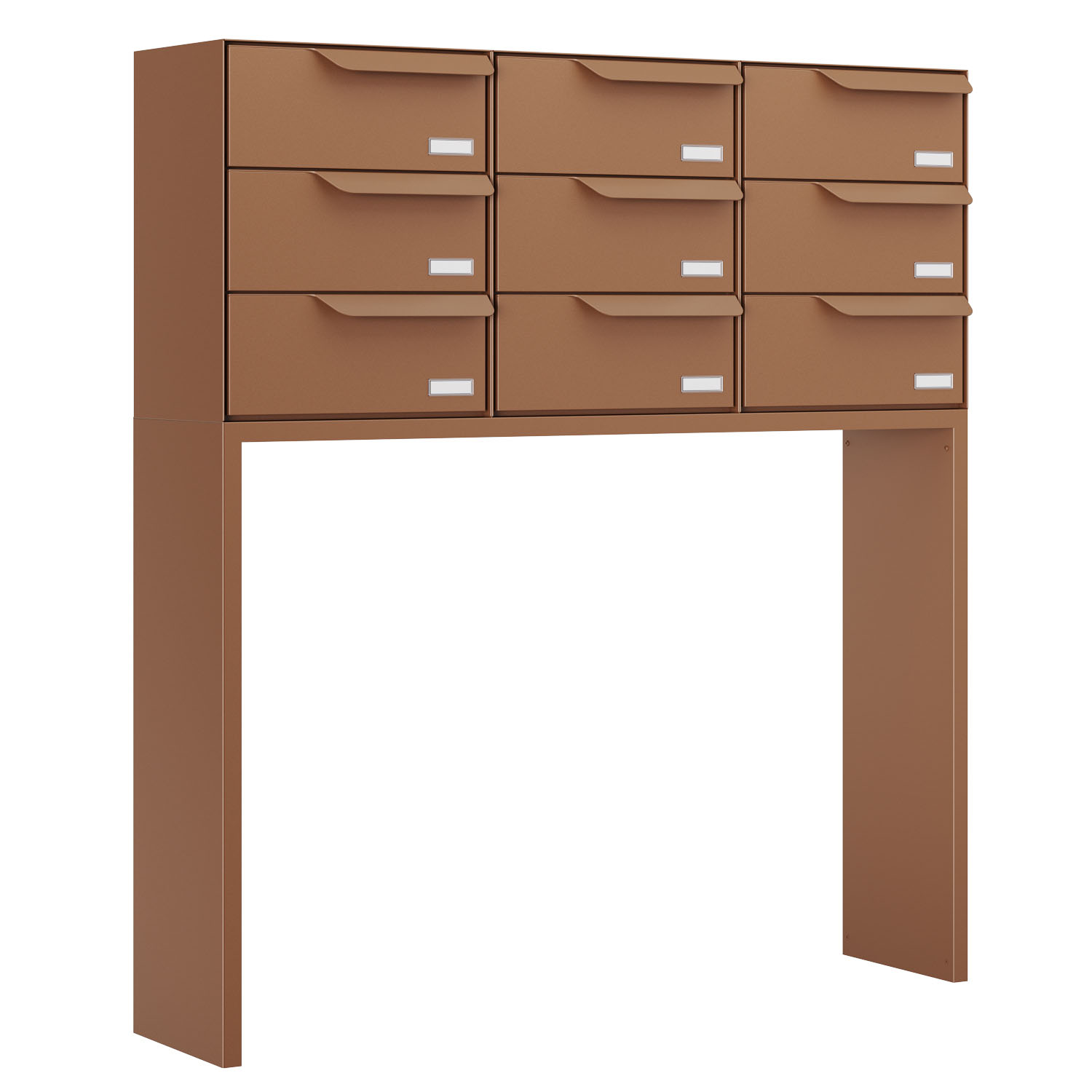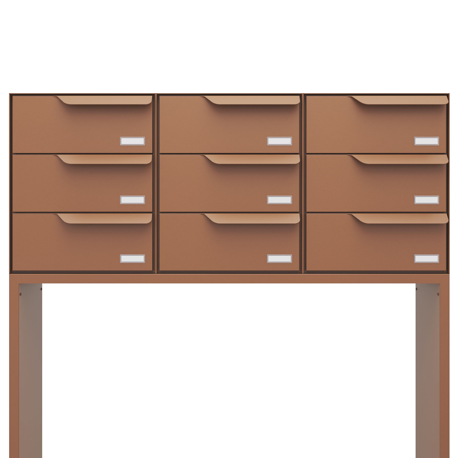 Freistehende Briefkastenanlage für neun Parteien: Dank der besonders stabilen Standfüße frei platzierbar und auch ohne Erdanker besonders standfest – ein Highlight für jeden Eingangsbereich.