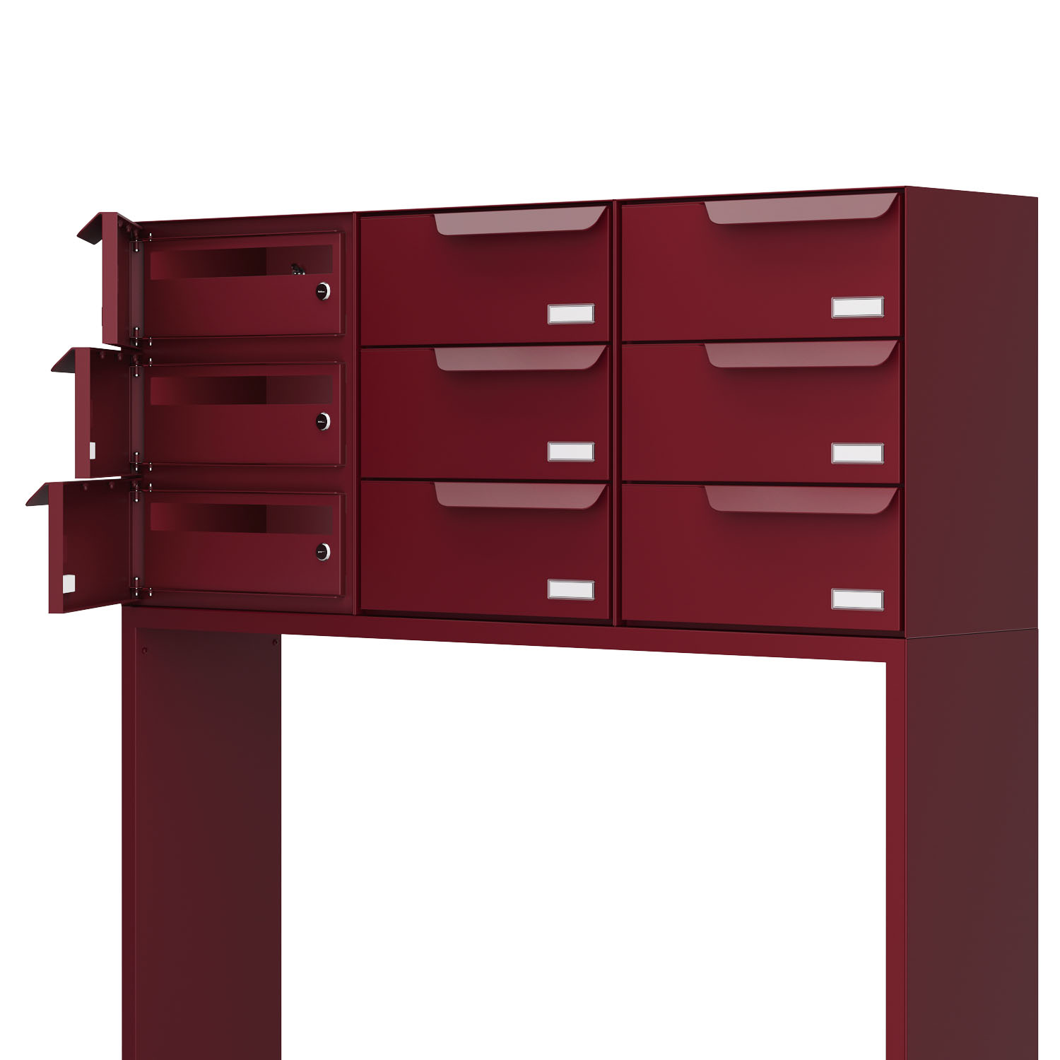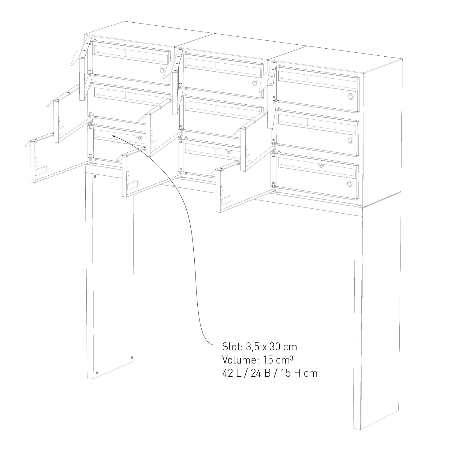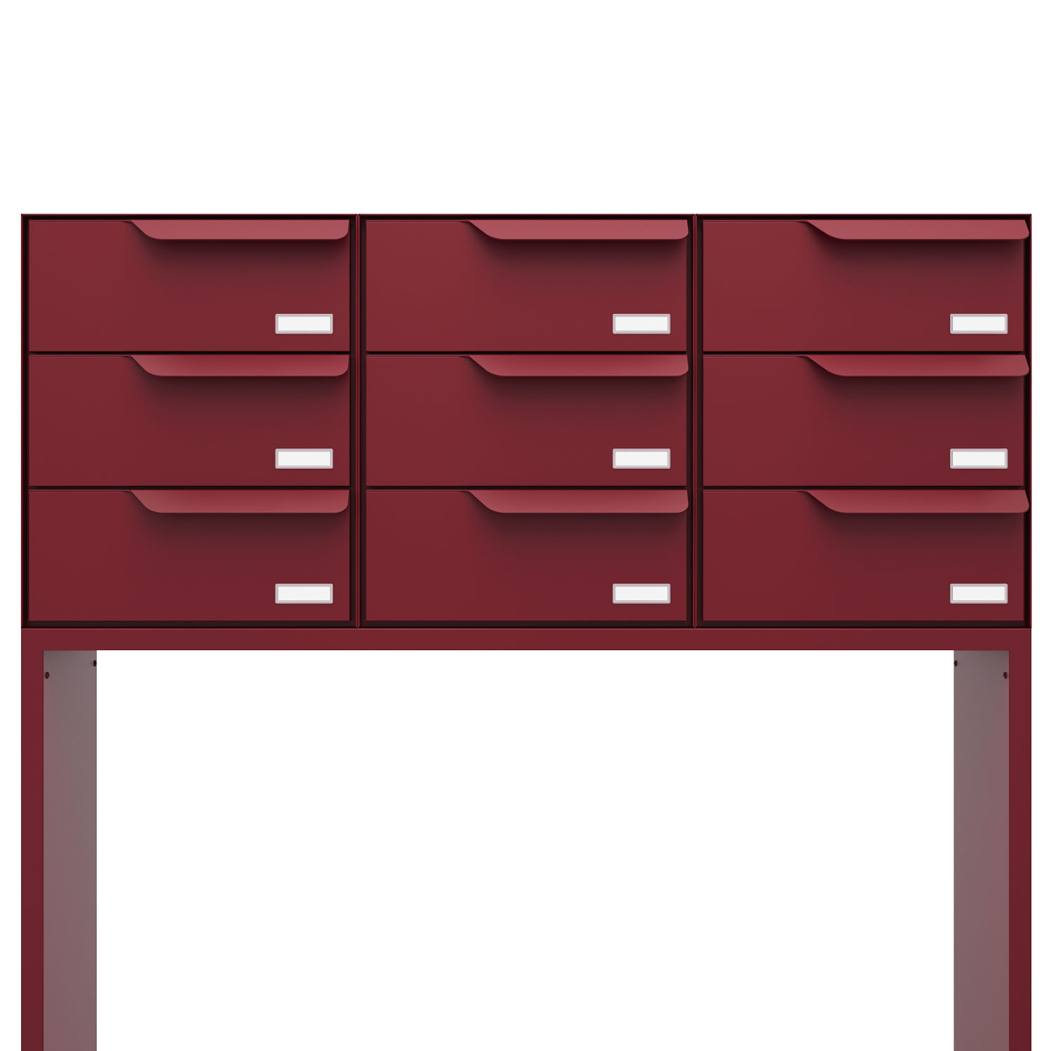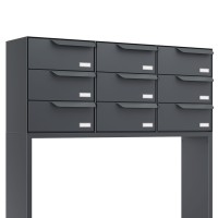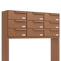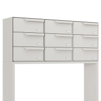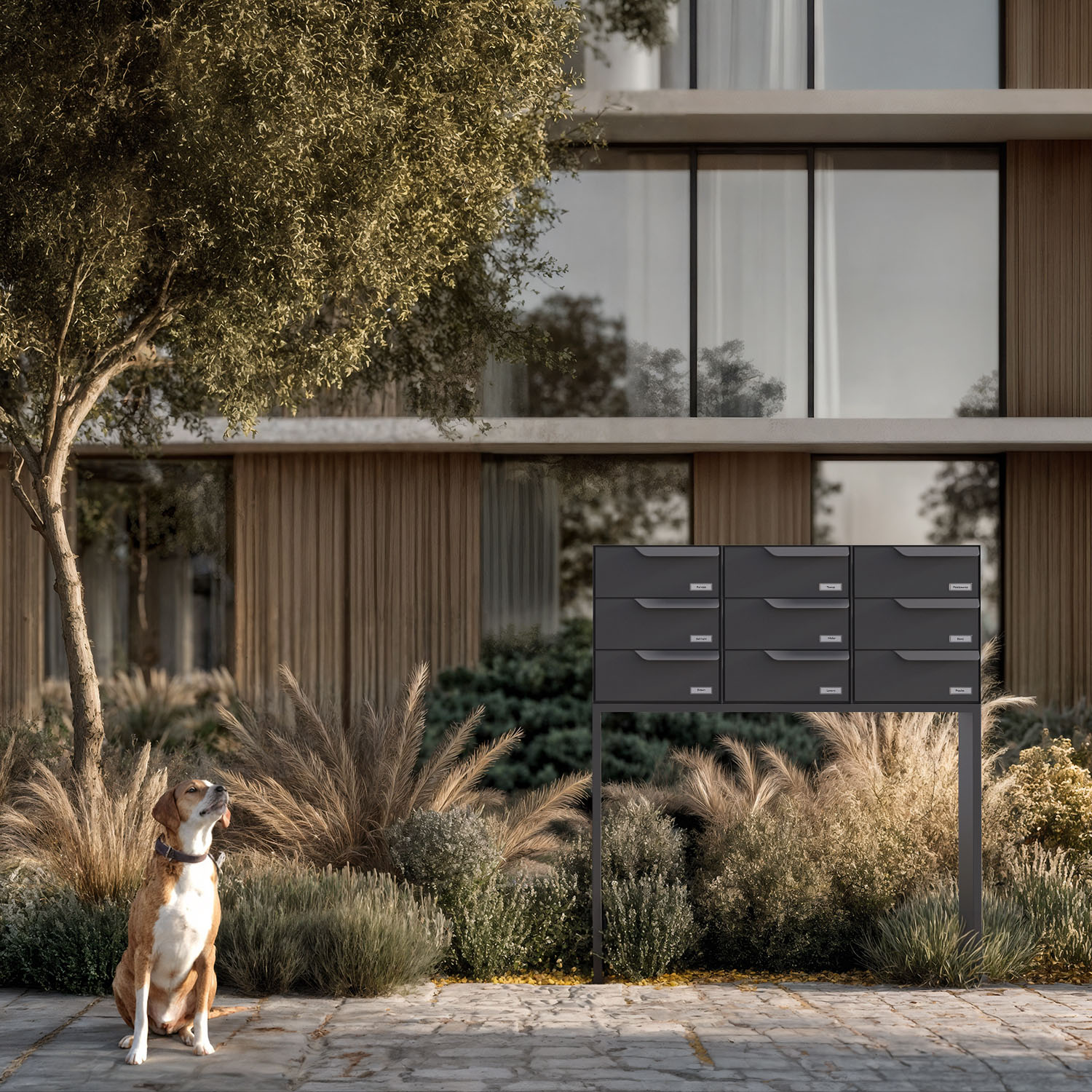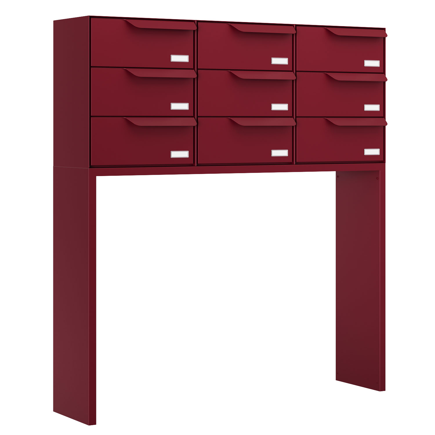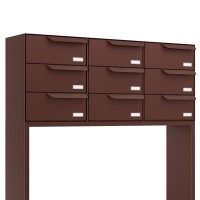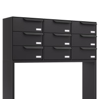 Freistehende Briefkastenanlage für neun Parteien: Dank der besonders stabilen Standfüße frei platzierbar und auch ohne Erdanker besonders standfest – ein Highlight für jeden Eingangsbereich.