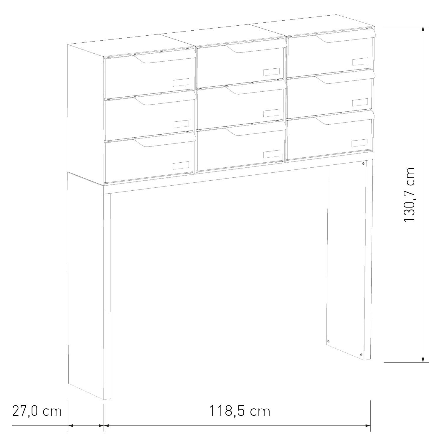3x3-Anordnung: Neun separate Briefkästen, in drei Reihen übereinander und jeweils drei nebeneinander angeordnet, sorgen für eine moderne und übersichtliche Gestaltung.