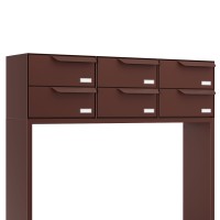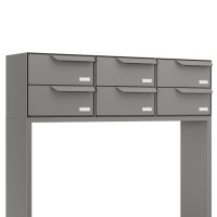 Freistehende Briefkastenanlage für sechs Parteien: Dank der besonders stabilen Standfüße frei platzierbar und auch ohne Erdanker besonders standfest – ein Highlight für jeden Eingangsbereich.