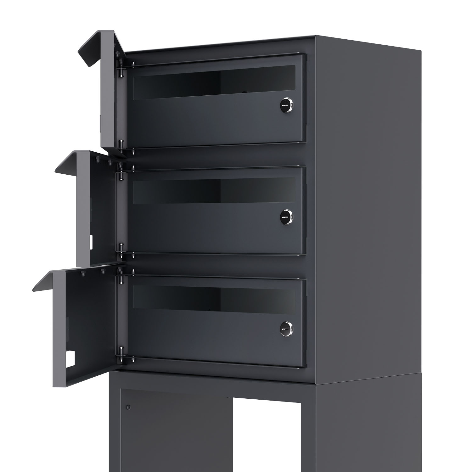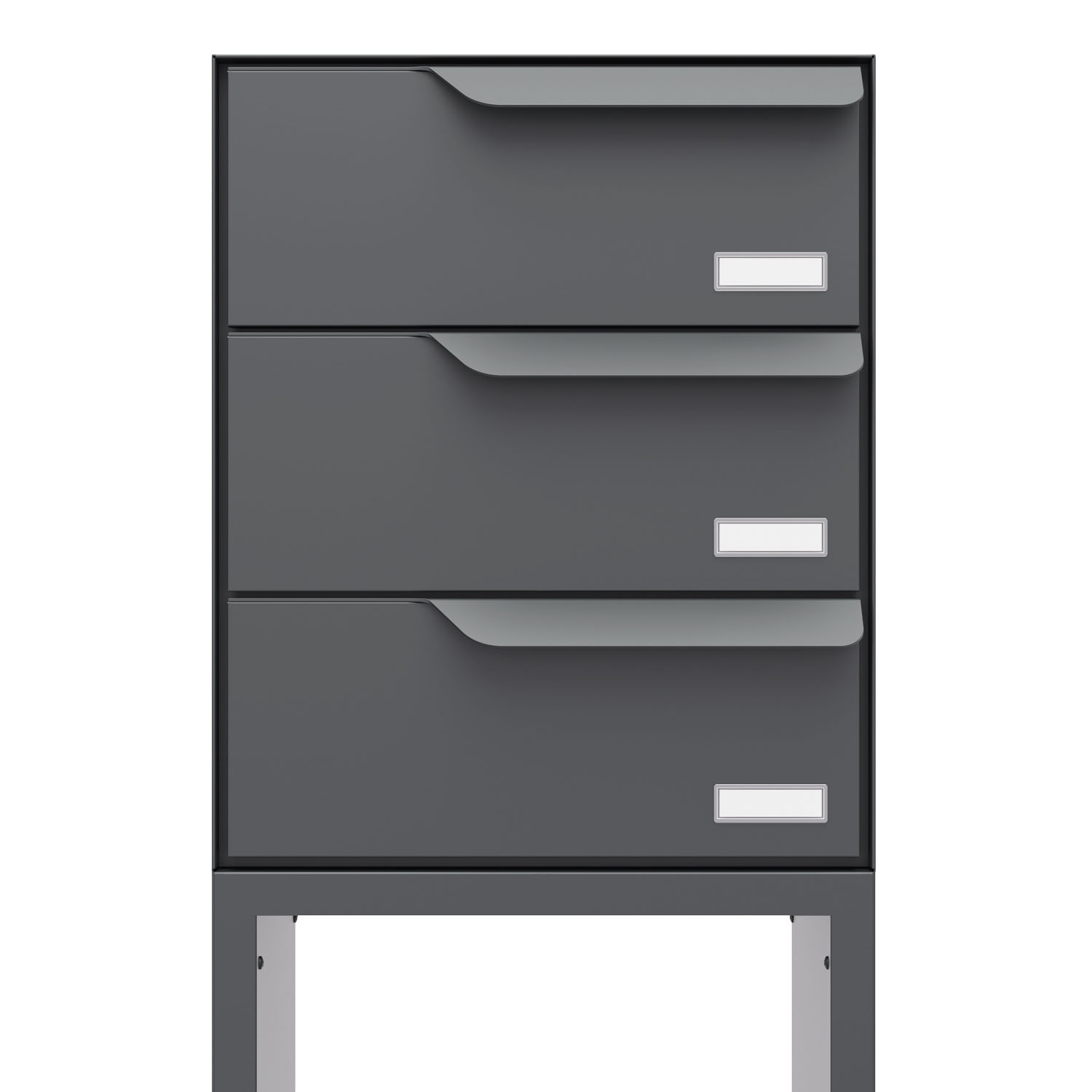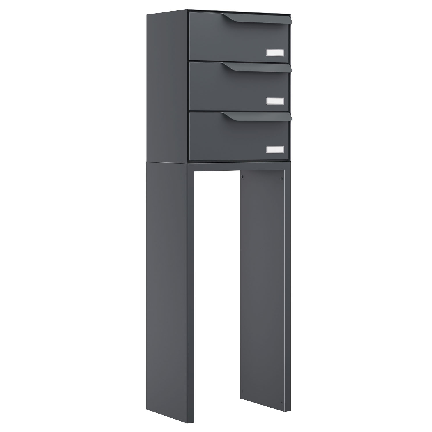 Freistehende Briefkastenanlage für drei Parteien: Dank der besonders stabilen Standfüße frei platzierbar und auch ohne Erdanker besonders standfest – ein Highlight für jeden Eingangsbereich.