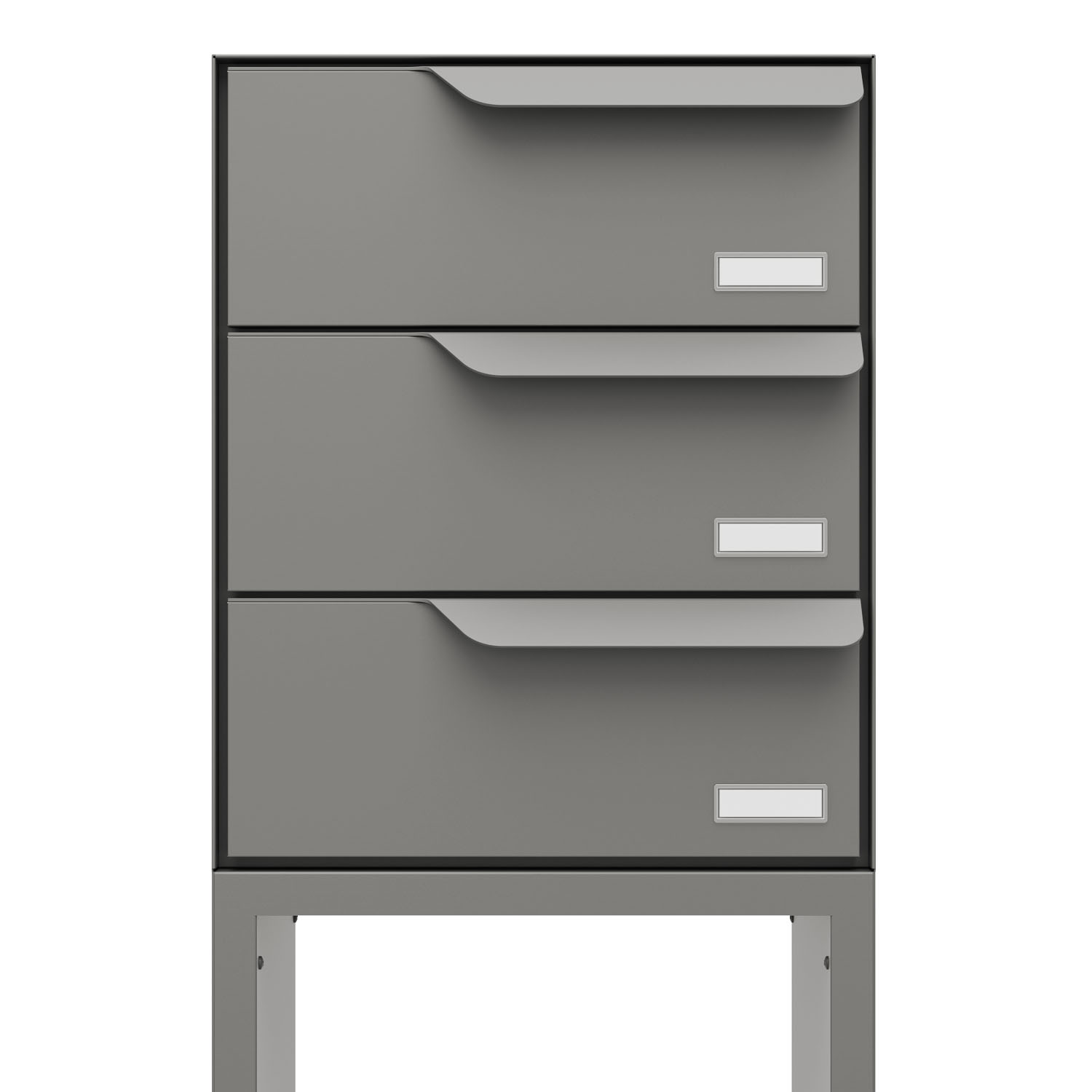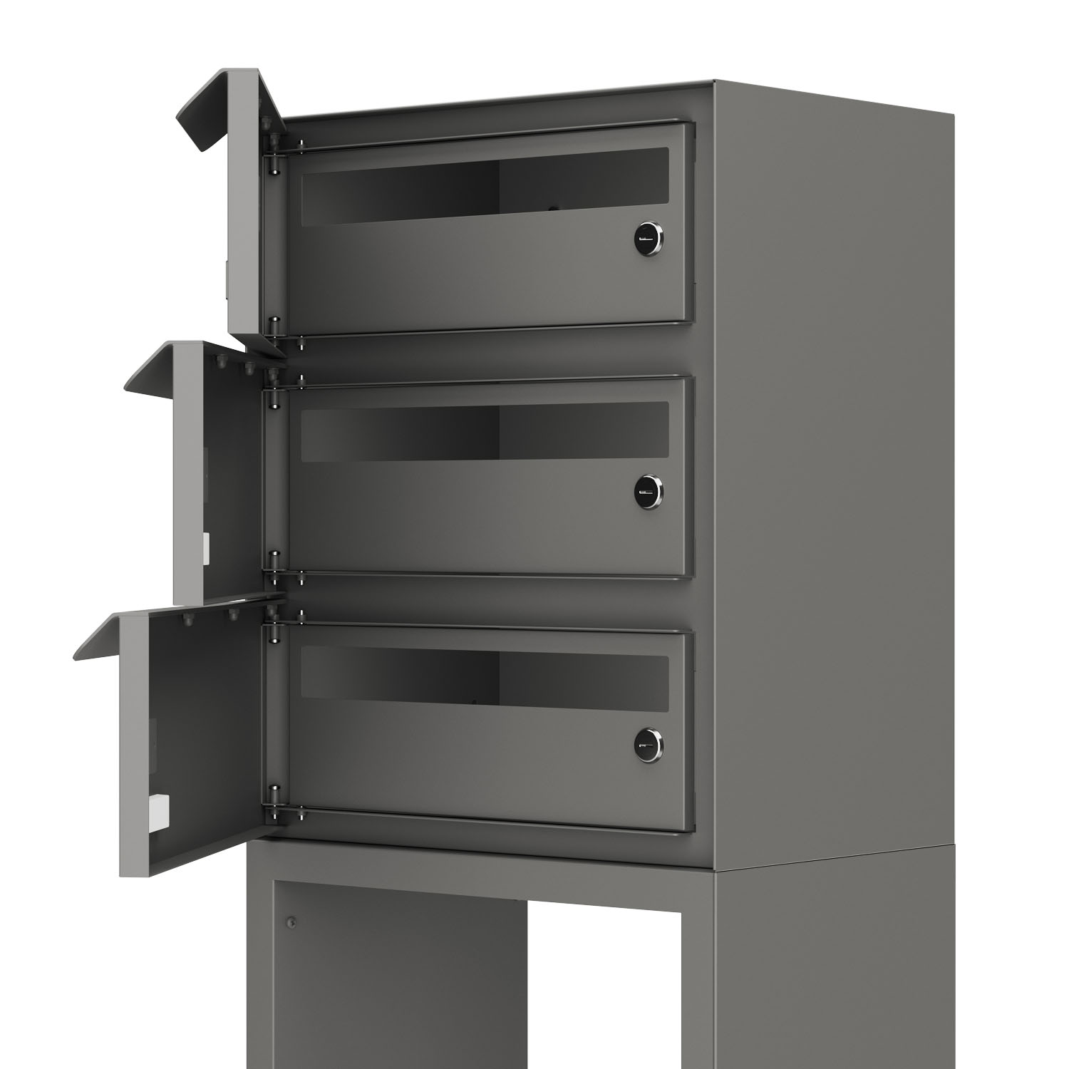 Freistehende Briefkastenanlage für drei Parteien: Dank der besonders stabilen Standfüße frei platzierbar und auch ohne Erdanker besonders standfest – ein Highlight für jeden Eingangsbereich.