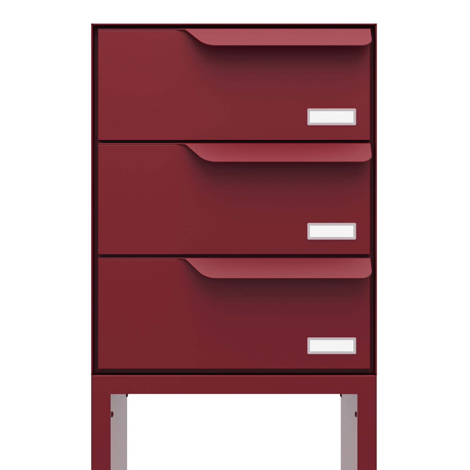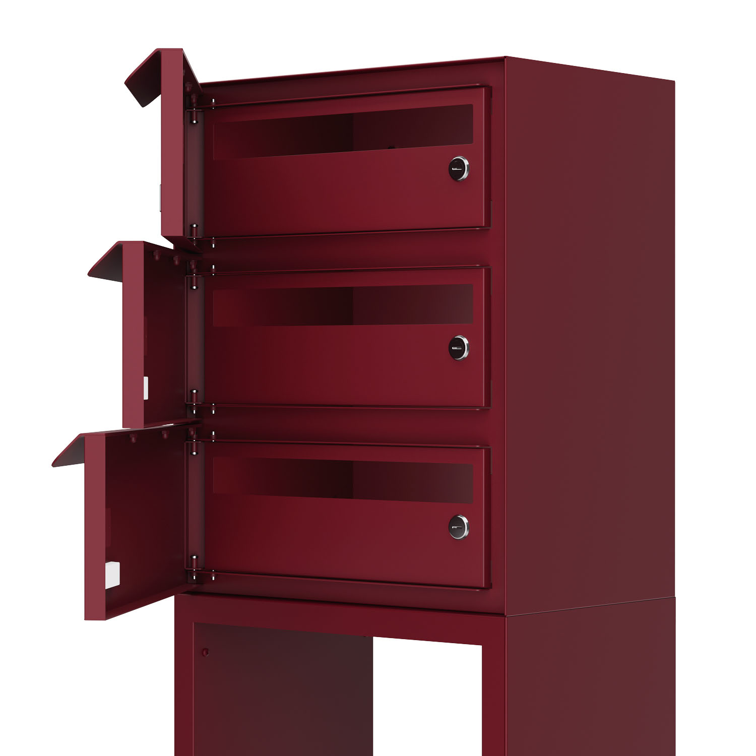 Freistehende Briefkastenanlage für drei Parteien: Dank der besonders stabilen Standfüße frei platzierbar und auch ohne Erdanker besonders standfest – ein Highlight für jeden Eingangsbereich.