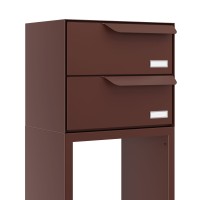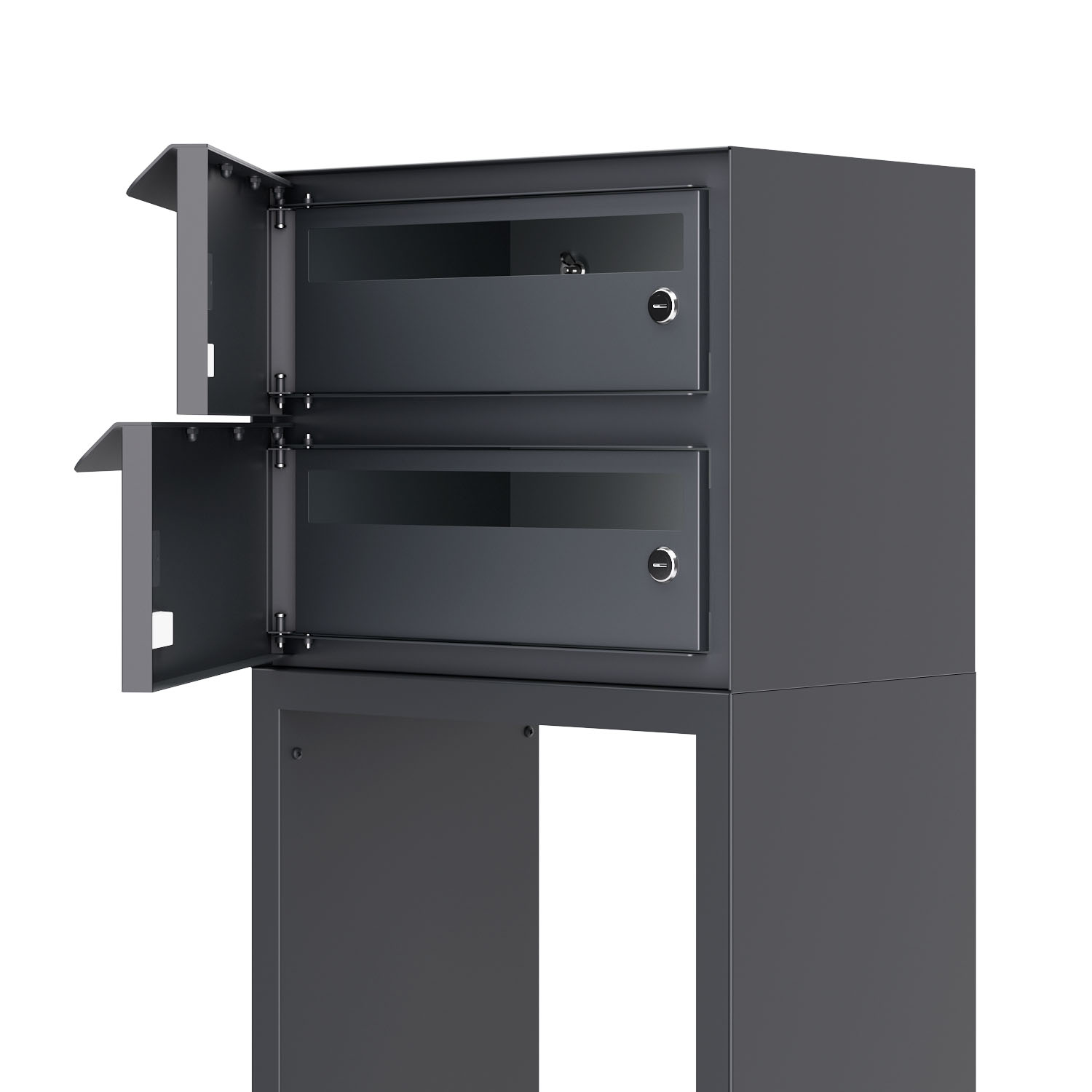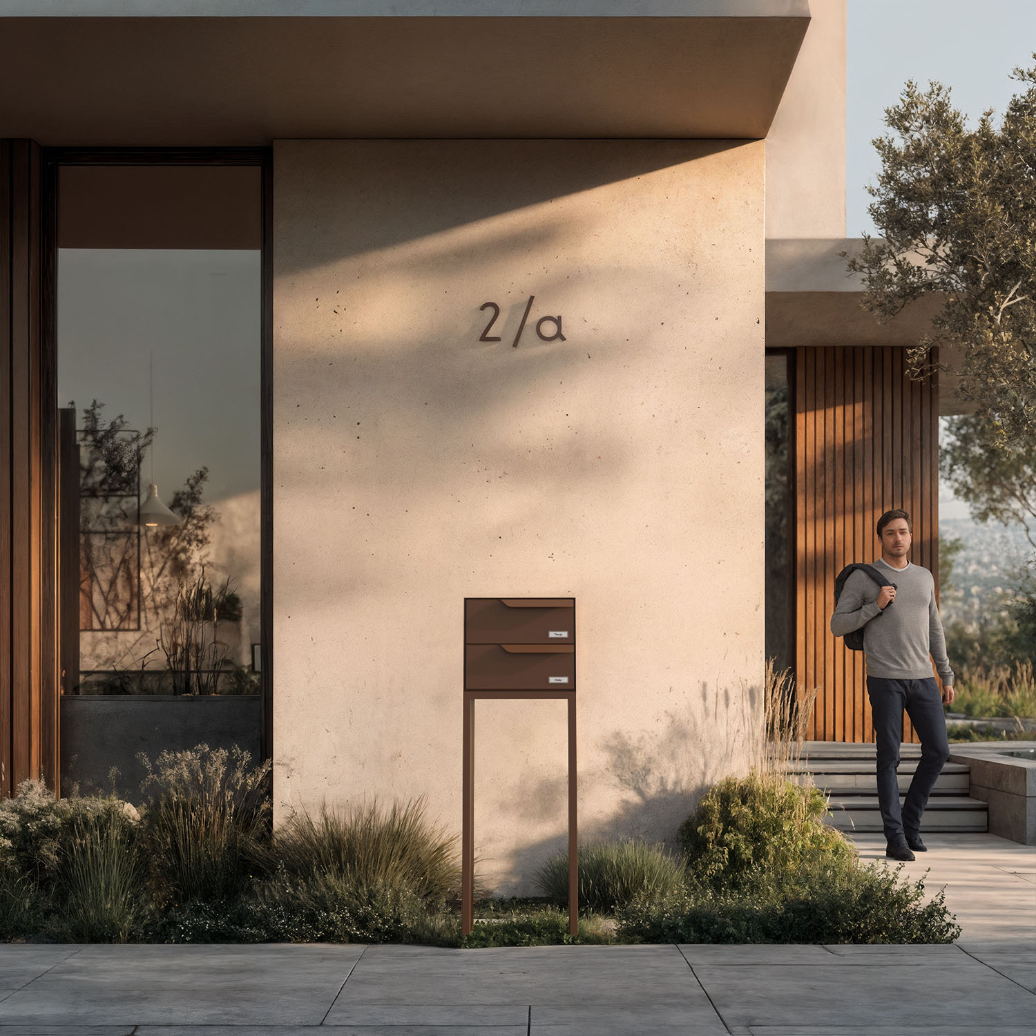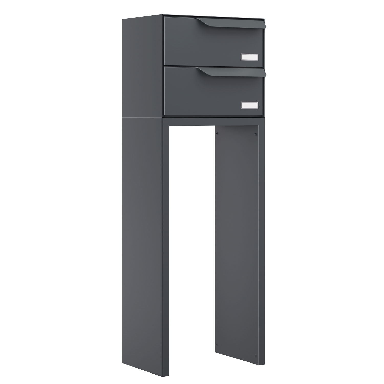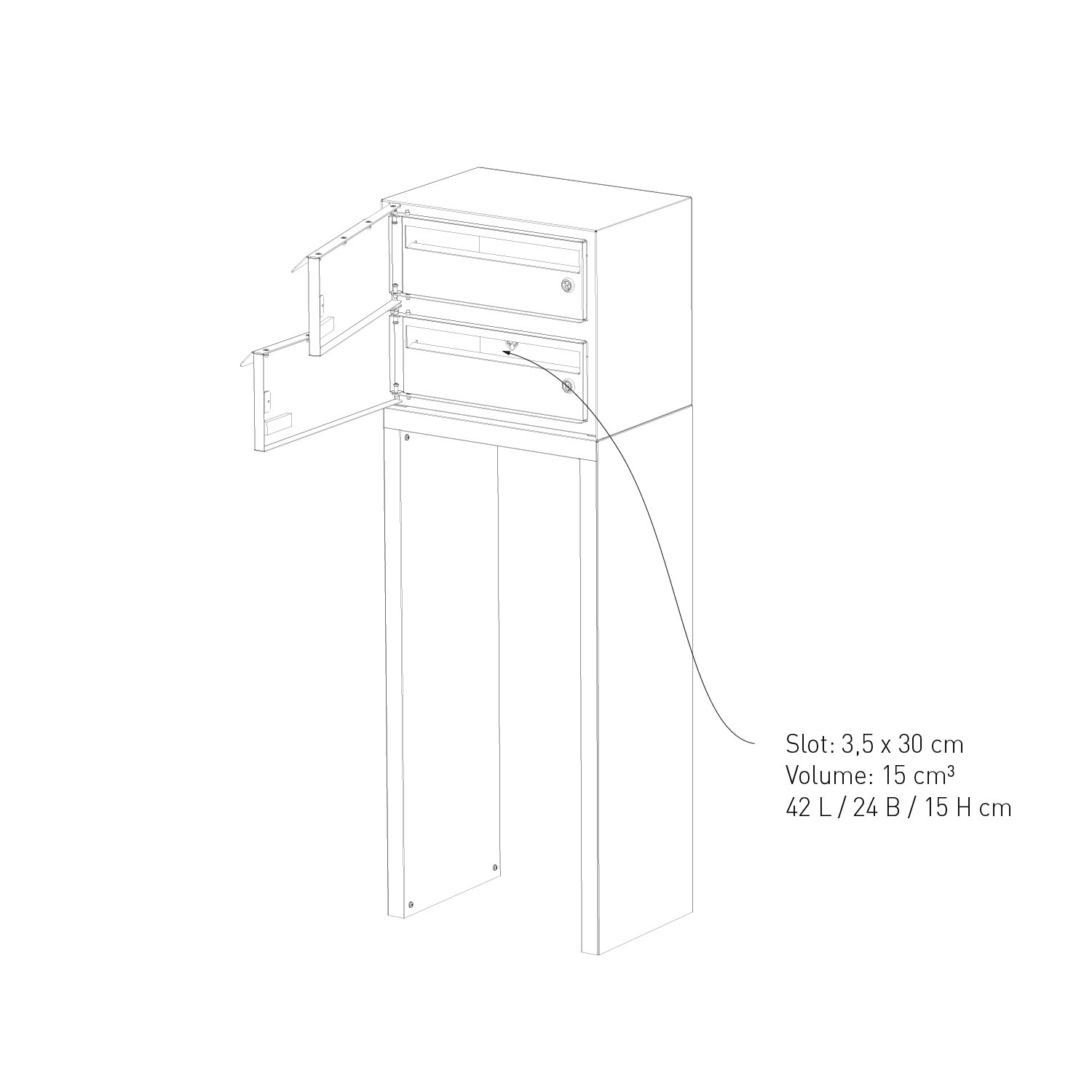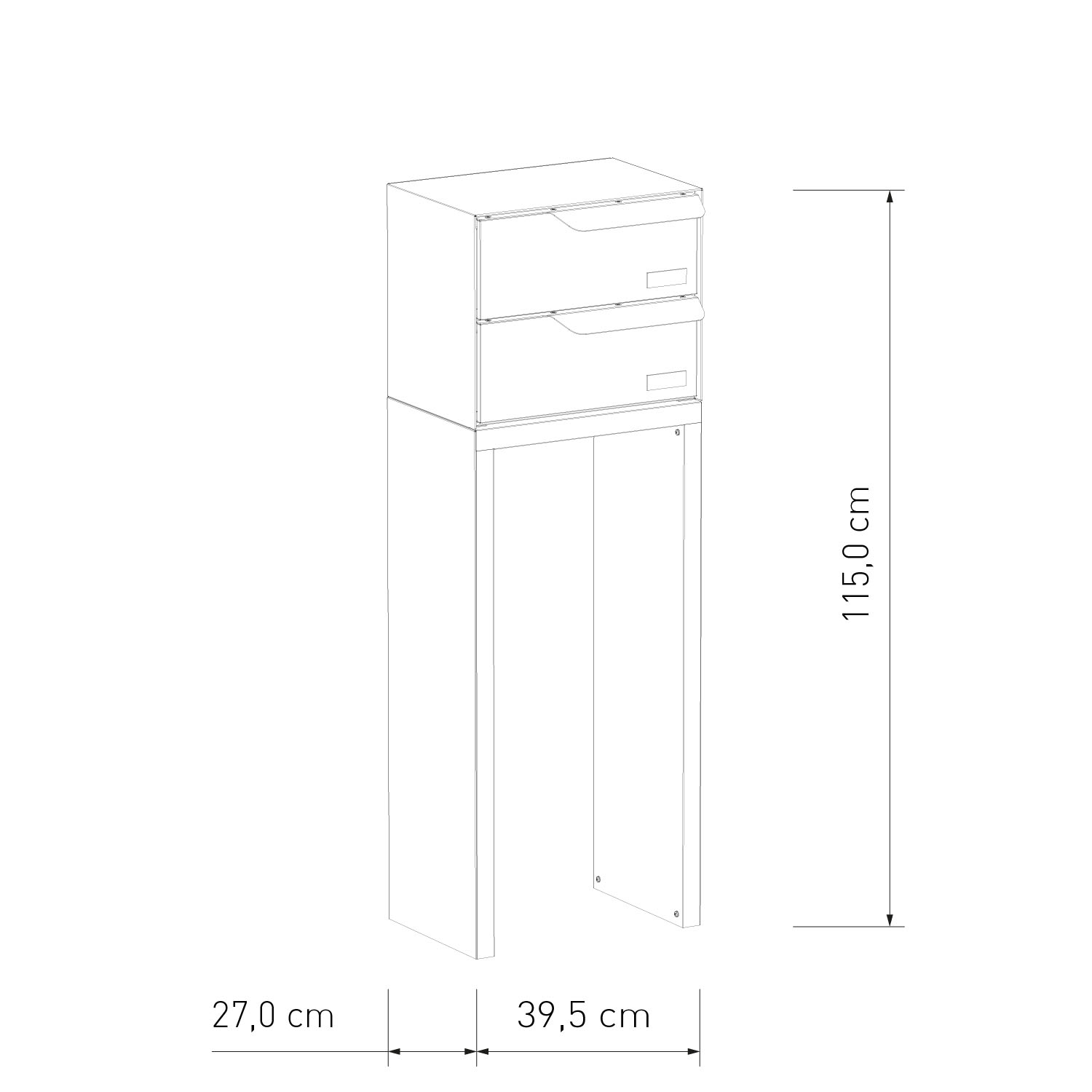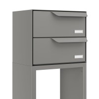 Freistehende Briefkastenanlage für zwei Parteien: Dank der besonders stabilen Standfüße frei platzierbar und auch ohne Erdanker besonders standfest – ein Highlight für jeden Eingangsbereich.