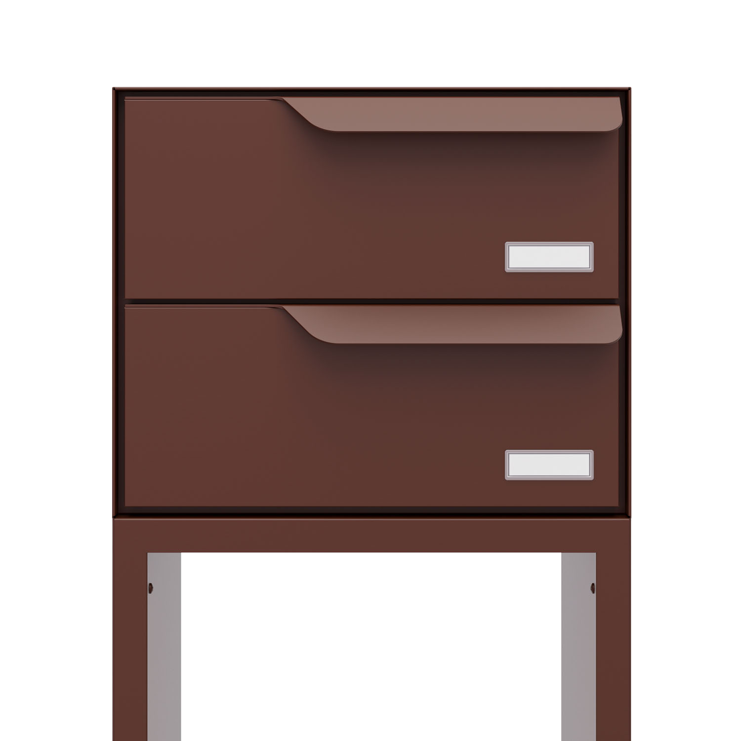 Freistehende Briefkastenanlage für zwei Parteien: Dank der besonders stabilen Standfüße frei platzierbar und auch ohne Erdanker besonders standfest – ein Highlight für jeden Eingangsbereich.