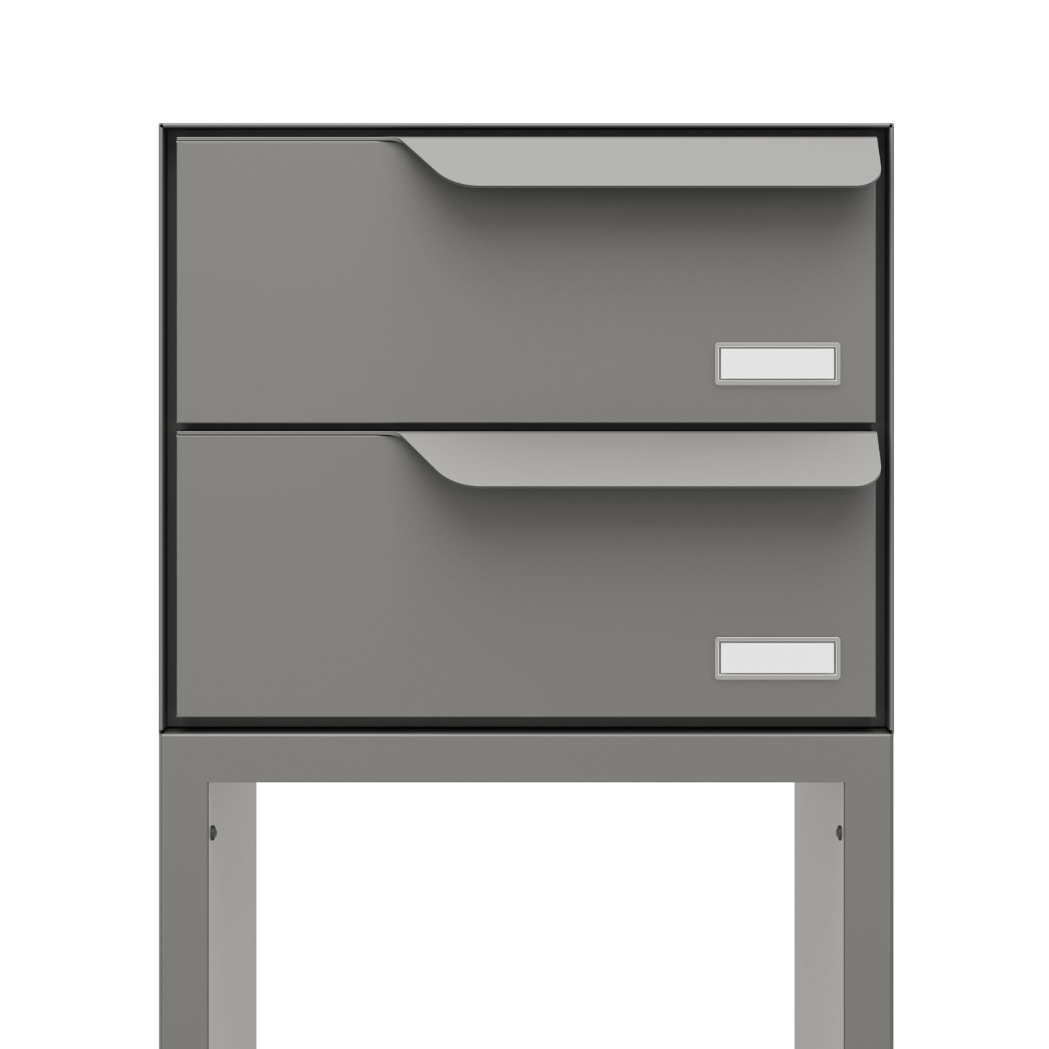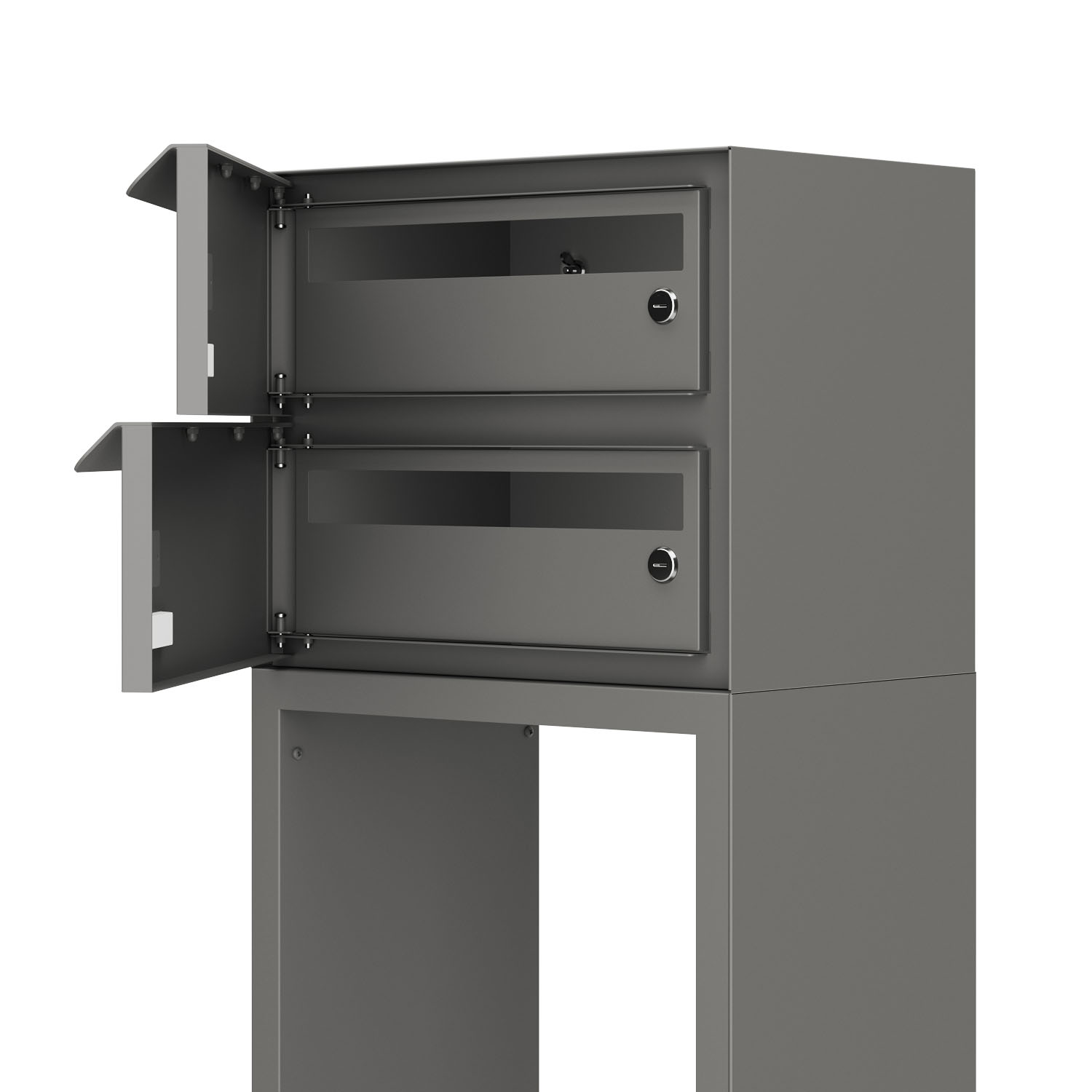 Freistehende Briefkastenanlage für zwei Parteien: Dank der besonders stabilen Standfüße frei platzierbar und auch ohne Erdanker besonders standfest – ein Highlight für jeden Eingangsbereich.
