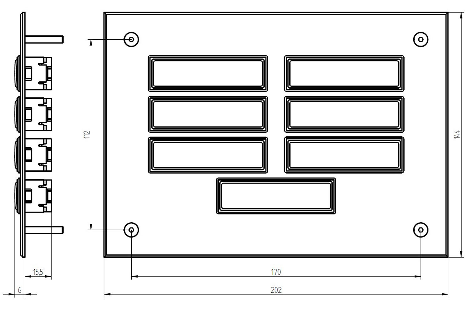 Klares Layout: 6 Klingeltaster + 1 Lichtschild für individuelle Gestaltung
