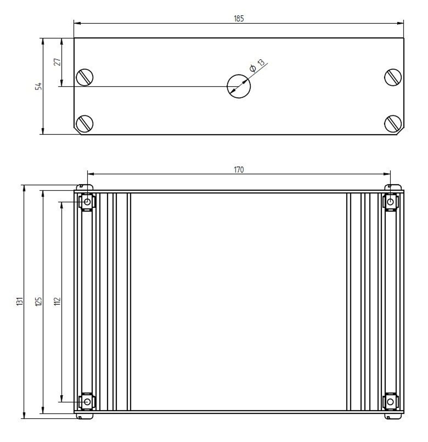 4 Befestigungslaschen mit Gewinde, Kabeleinführung oben und unten
