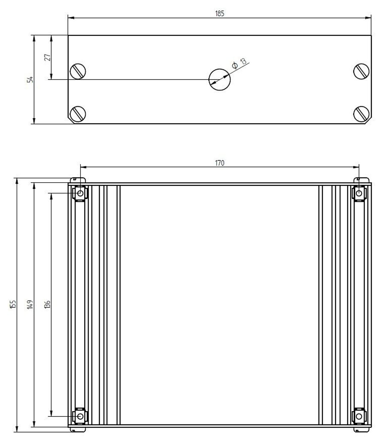 4 Befestigungstaschen mit Gewinde, Kabeleinführung oben und unten
