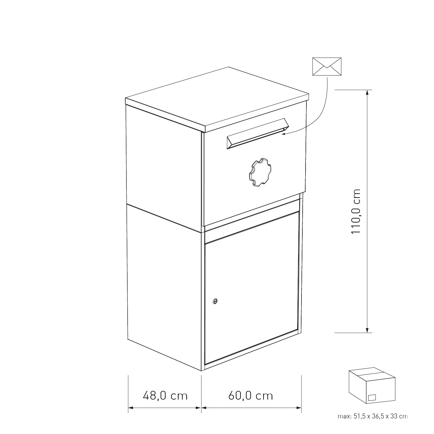 Extra große Paketbox XL: Nimmt problemlos Pakete bis zu einer Größe von 51,5 cm x 36,5 cm x 33 cm auf – perfekt für mehrere große Lieferungen am Tag.
