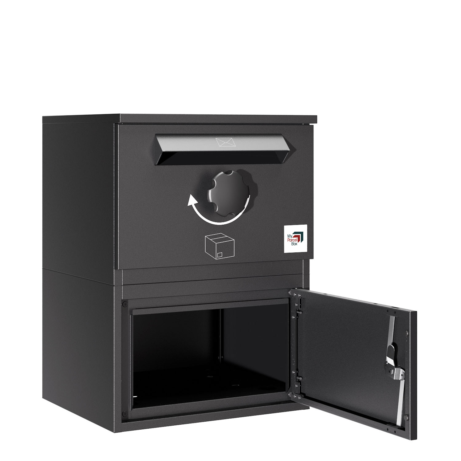Paketbox Kassel mit Flachdach - Größe M in Schwarz | Wandmontage von bravios