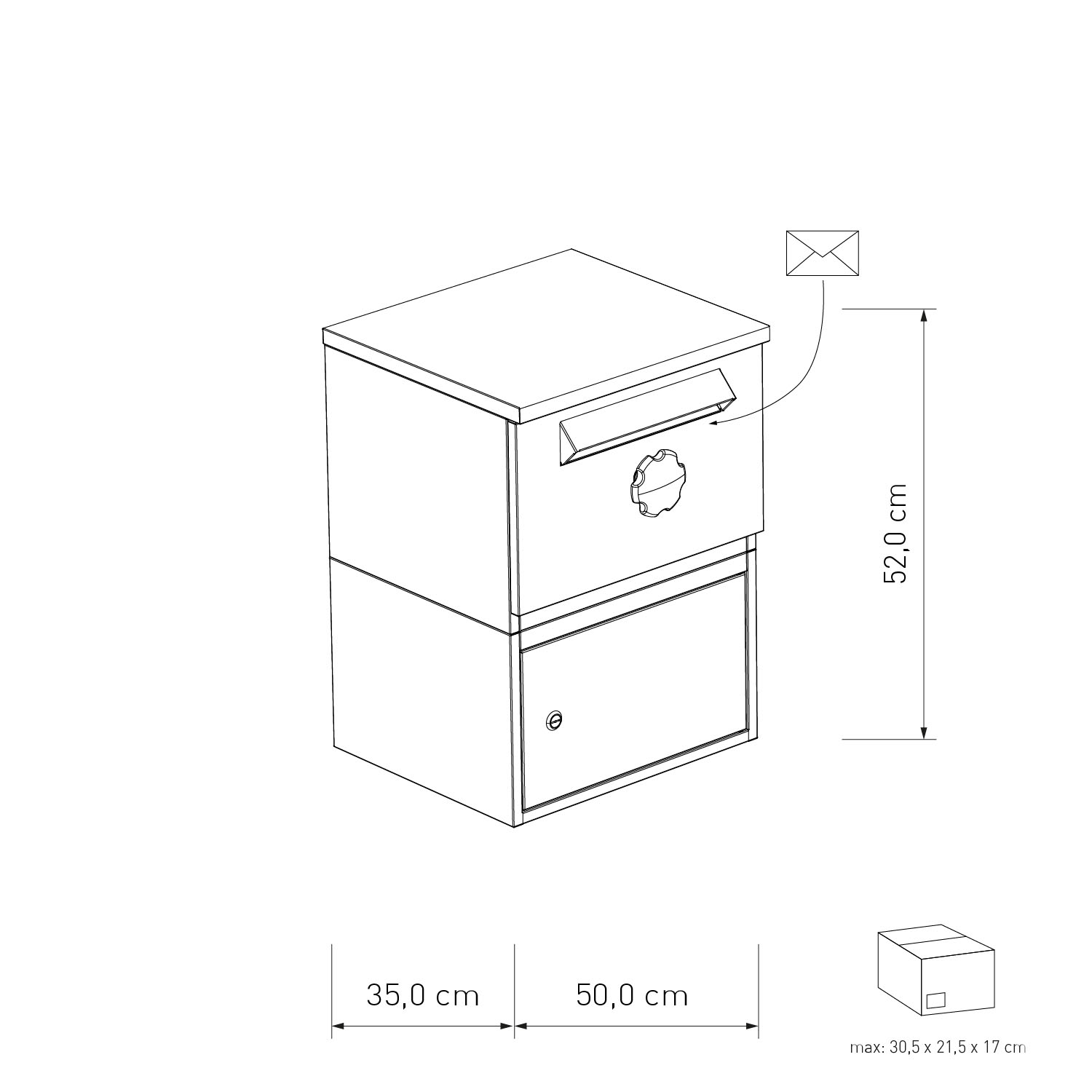 Kompakte Paketbox M: Nimmt Pakete bis zu einer Größe von 30,5 cm x 21,5 cm x 17 cm auf – ideal für kleinere Lieferungen und regelmäßige Sendungen.