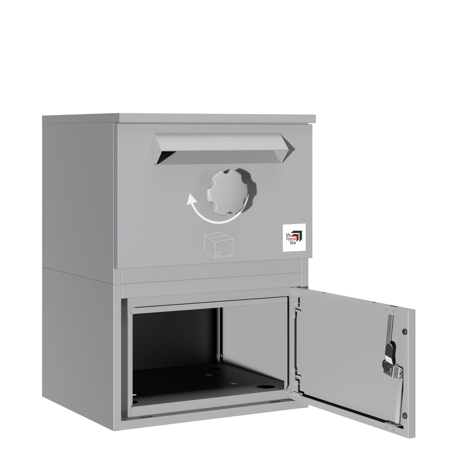 Kompakte Paketbox M: Nimmt Pakete bis zu einer Größe von 30,5 cm x 21,5 cm x 17 cm auf – ideal für kleinere Lieferungen und regelmäßige Sendungen.