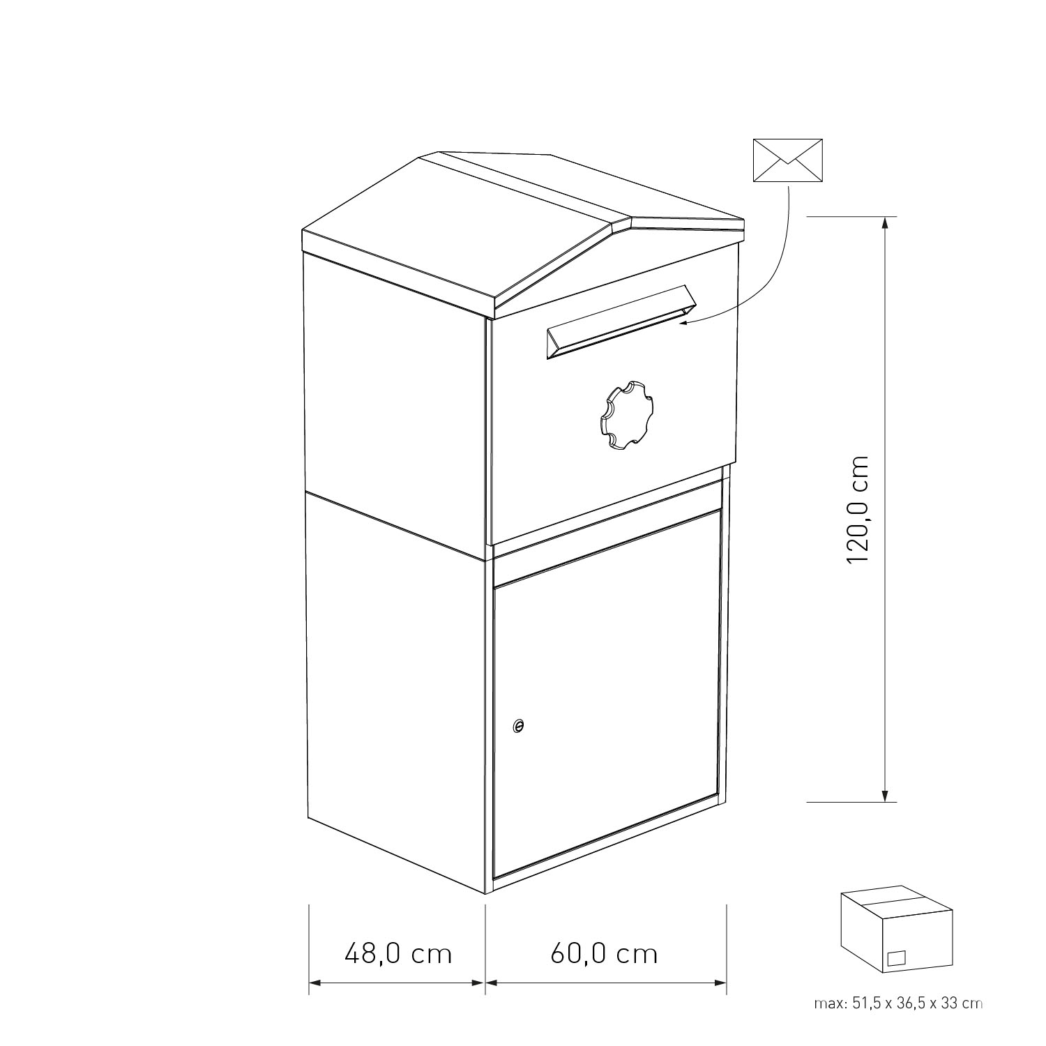 Extra große Paketbox XL: Nimmt problemlos Pakete bis zu einer Größe von 51,5 cm x 36,5 cm x 33 cm auf – perfekt für mehrere große Lieferungen am Tag.