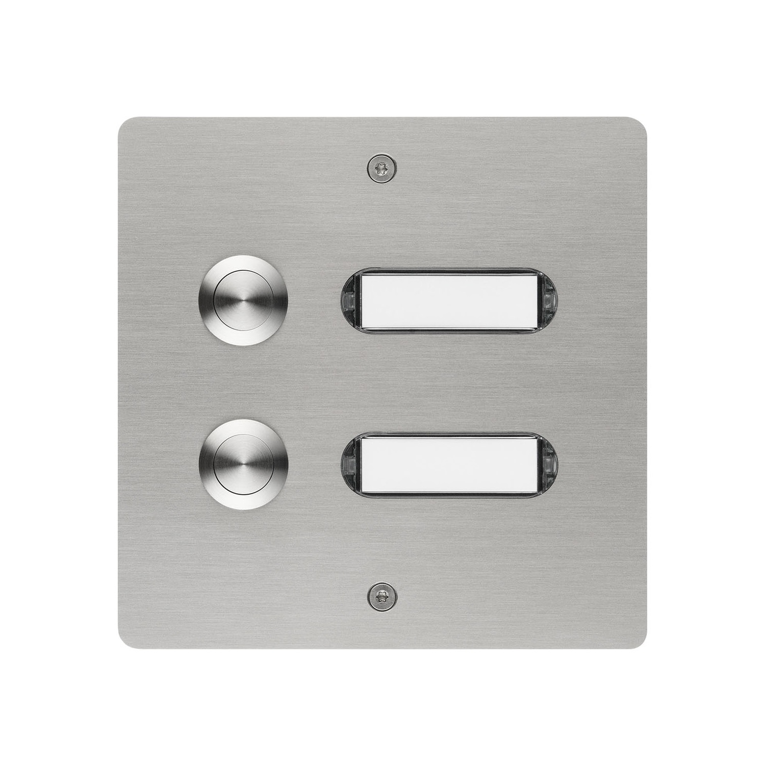 Etagenplatte 402 V2A – 2 Wohneinheiten | Edelstahl Unterputz-Klingel mit LED-Namensschildern