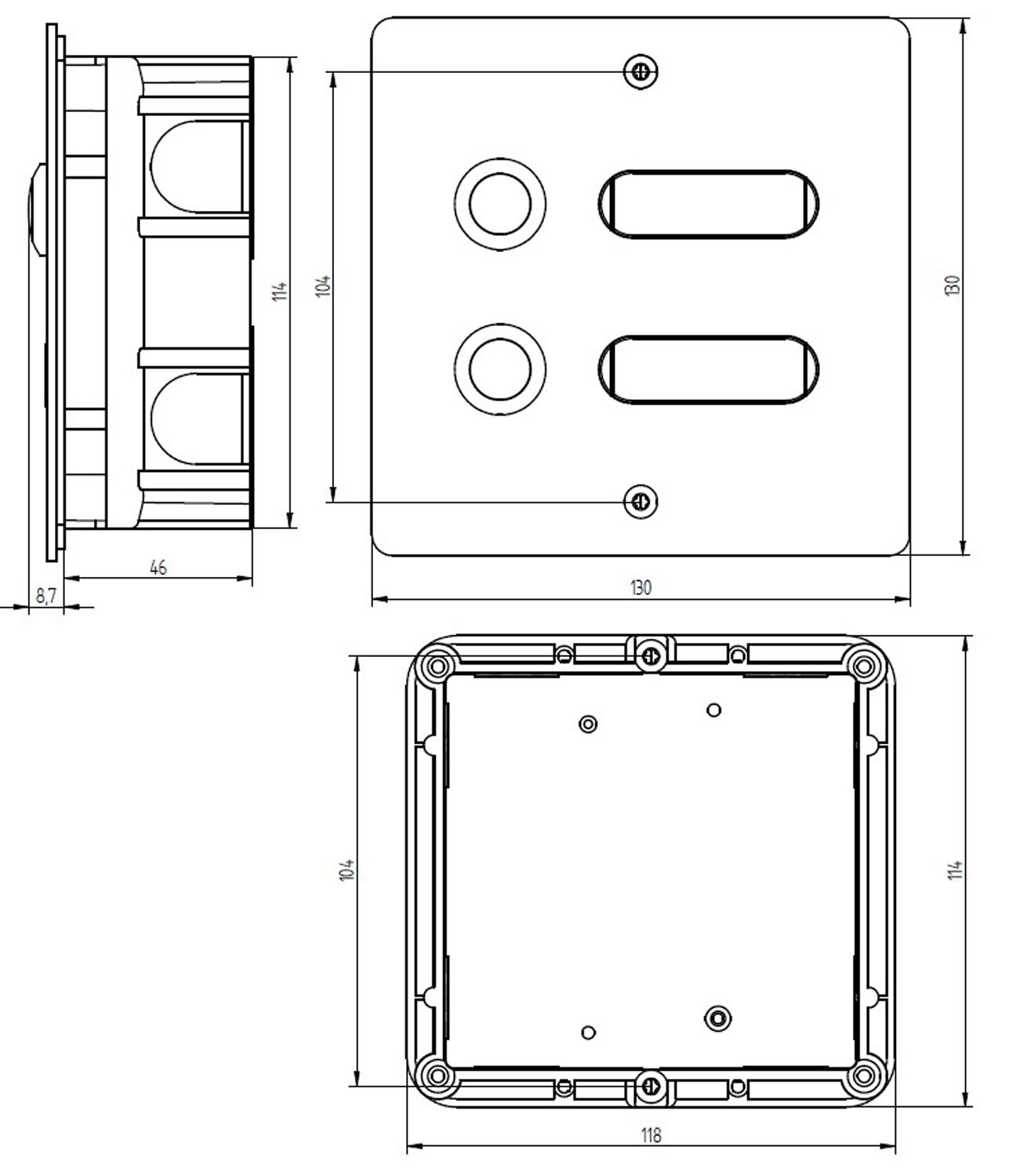 Form / Maße: Quadratisch (130 x 130 x 45 mm)