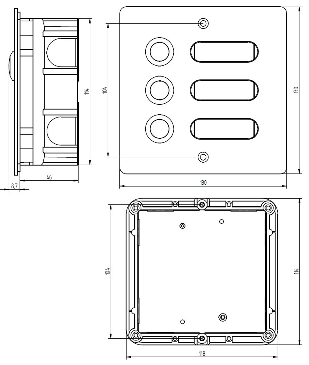 Form / Maße: Quadratisch (130 x 130 x 45 mm)