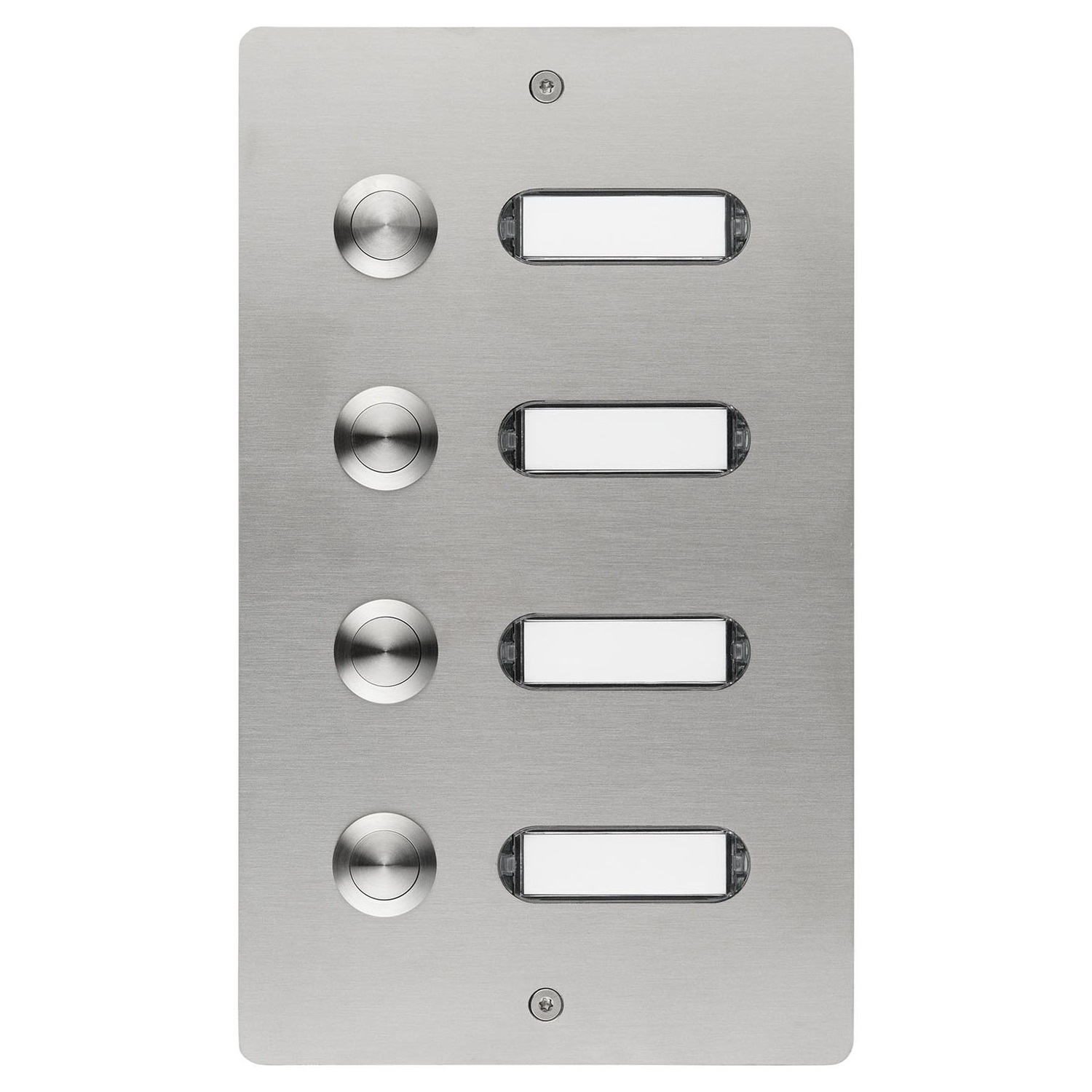 Etagenplatte 404 V2A – 4 Wohneinheiten | Edelstahl Unterputz-Klingel mit LED-Namensschildern