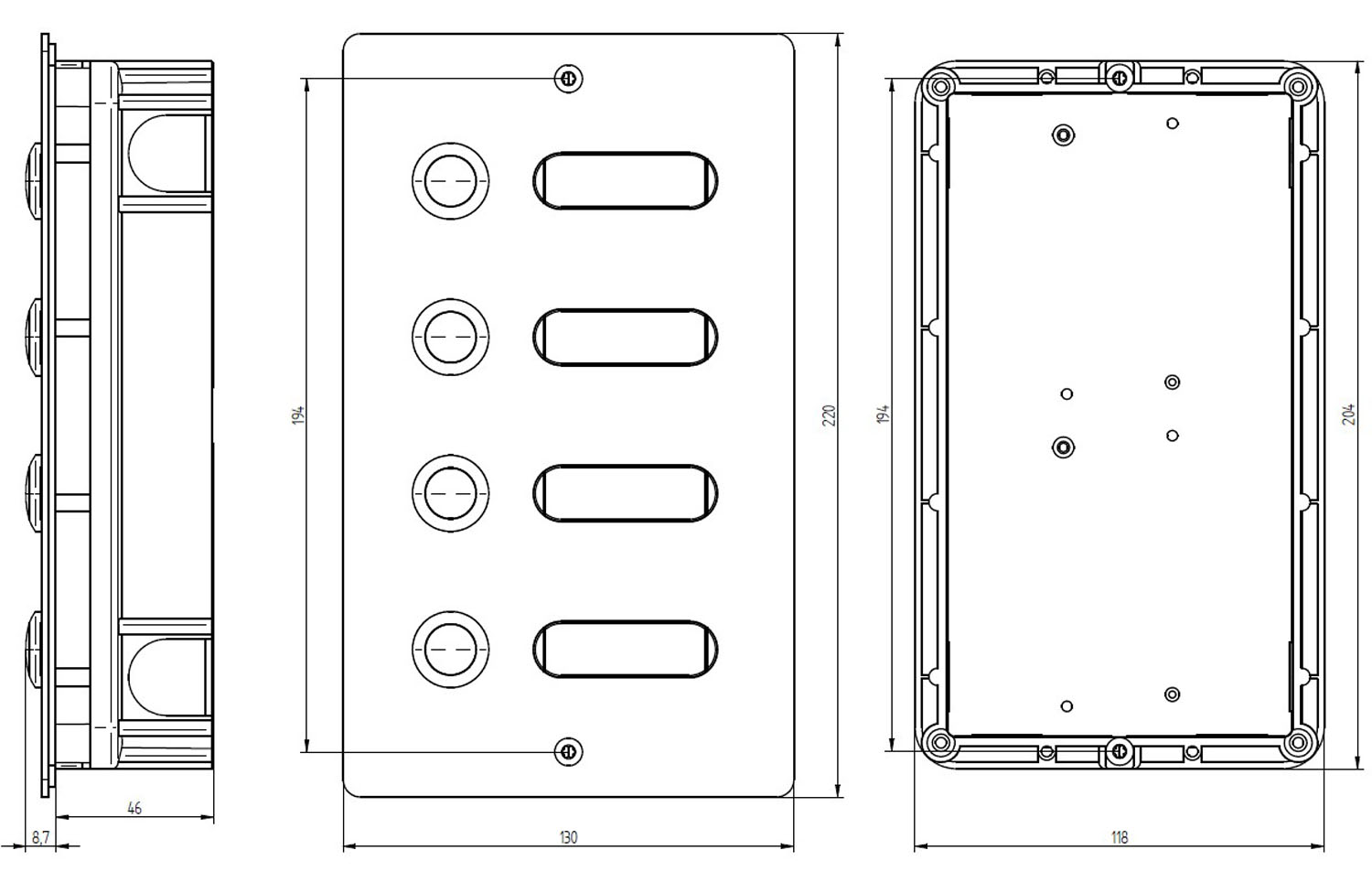 Form / Maße: Rechteckig (130 x 220 x 45 mm)