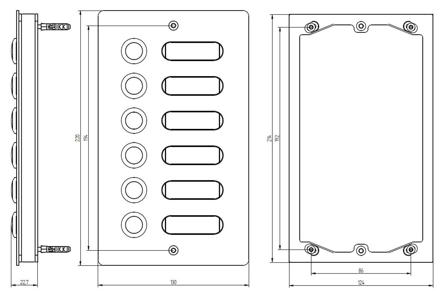 Mit ihren kompakten Maßen von 130 × 220 × 19 mm und der rechteckigen Form fügt sich die Platte dezent und stilvoll in jede Gebäudestruktur ein. Die Spannungsversorgung der Klingeleinheit erfolgt über 12 V AC/DC bei 1,5 A. Auch bei extremen Temperaturen zwischen –20 °C und +60 °C bleibt die Funktion zuverlässig gewährleistet.