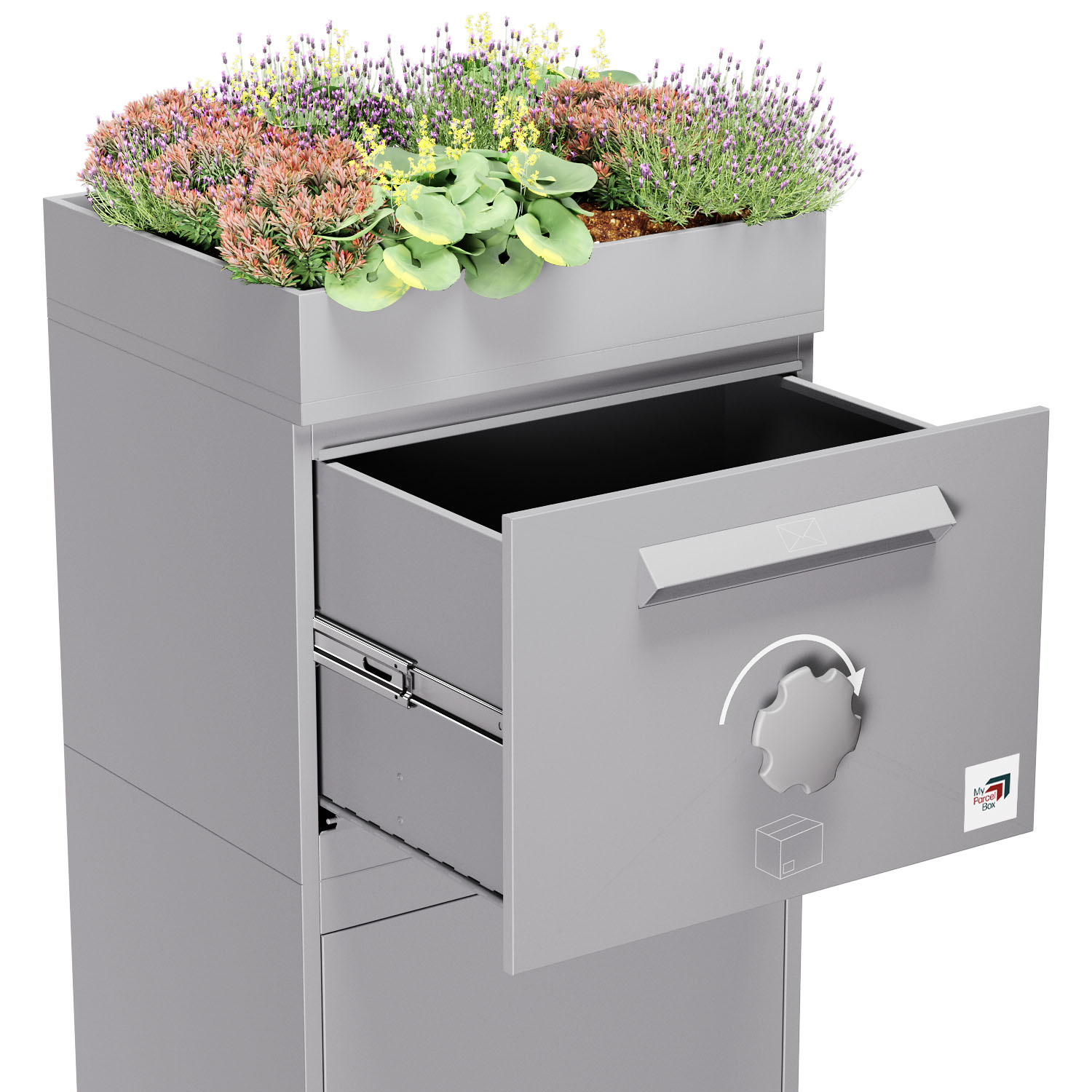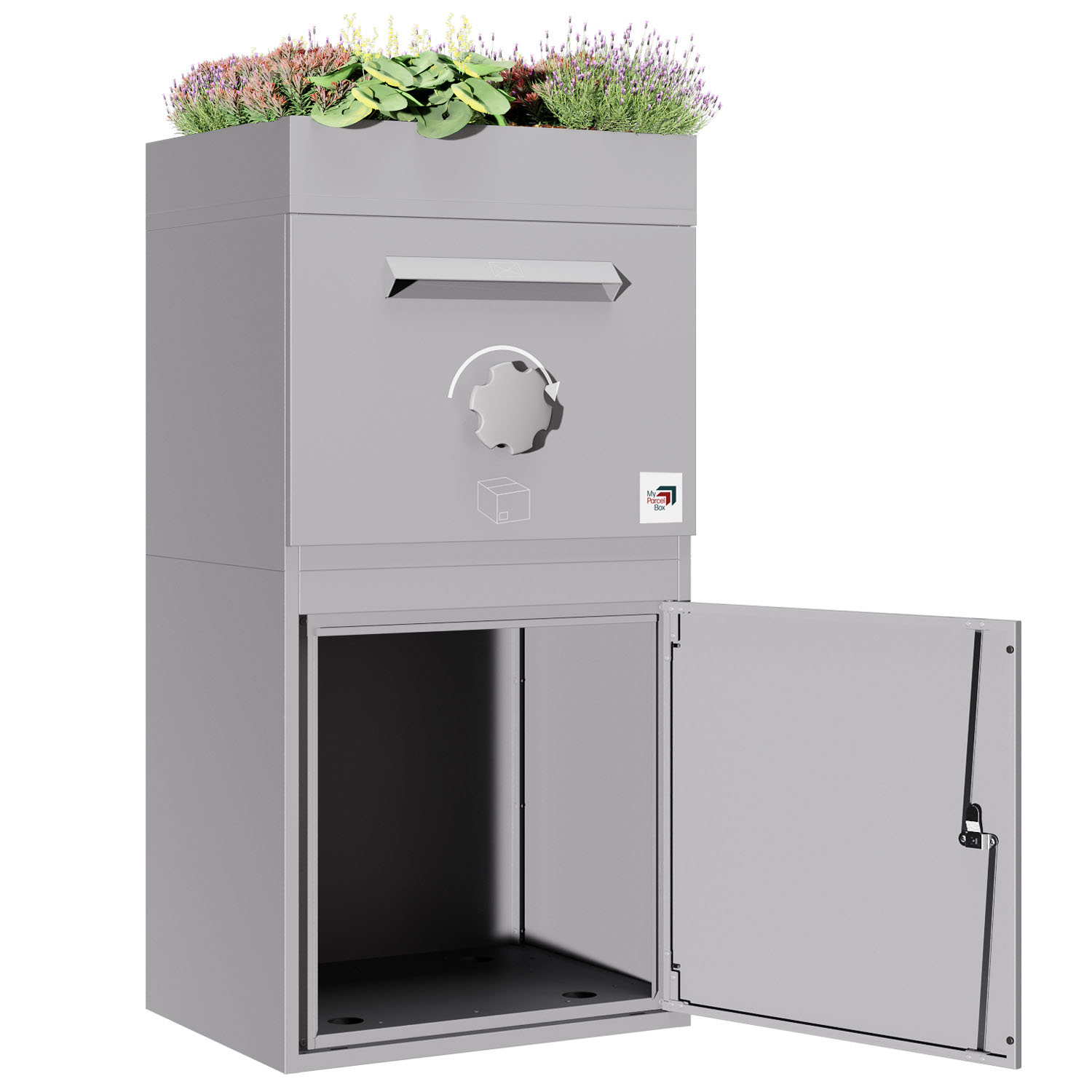 Paketbox Berlin mit Pflanzdach - Größe XL in Achatgrau | freistehend