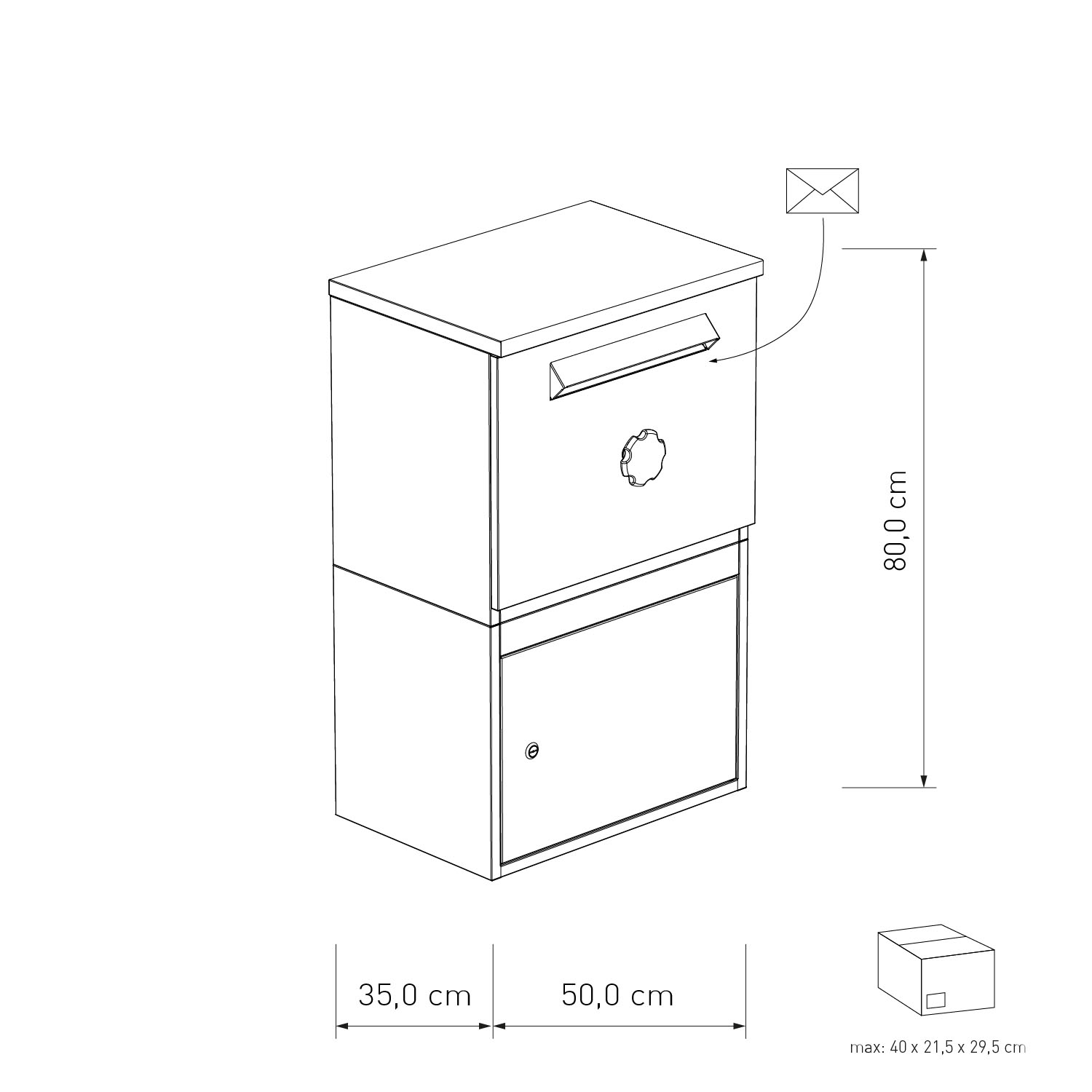 Große Paketbox L: Nimmt problemlos Pakete bis zu einer Größe von 40 cm x 21,5 cm x 29,5 cm auf – perfekt für mehrere mittelgroße Lieferungen am Tag.