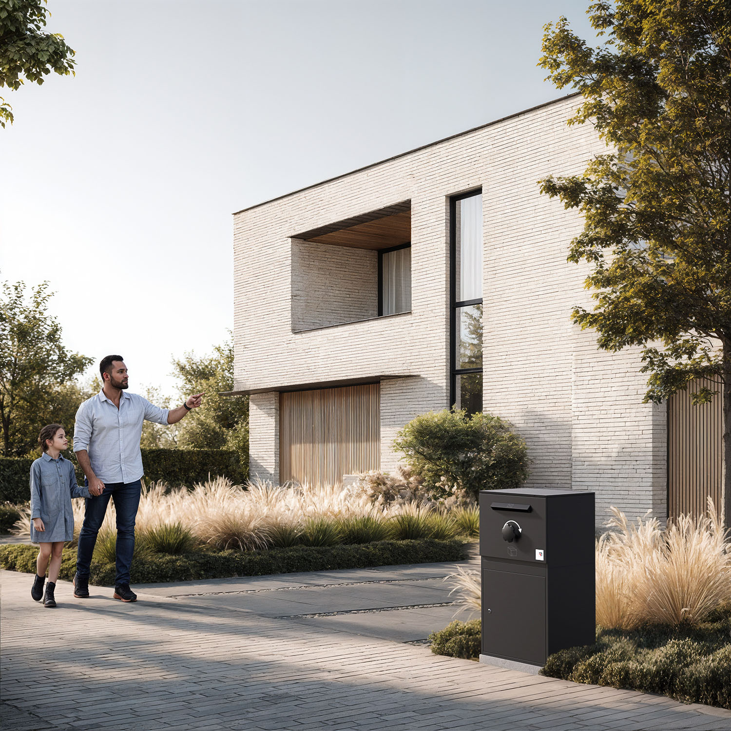Die freistehende Paketbox "Kassel" von Bravios ist die ideale Lösung für alle, die Wert auf Sicherheit, großzügigen Stauraum und modernes Design legen. Mit ihrem klaren Flachdach fügt sich die Paketbox perfekt in jede Umgebung ein und bietet eine elegante sowie funktionale Aufbewahrung für Ihre Pakete. Dank der einfachen, freistehenden Montage können Sie die Box flexibel vor Ihrem Haus, im Vorgarten oder an der Einfahrt platzieren – ganz ohne aufwendige Installation.