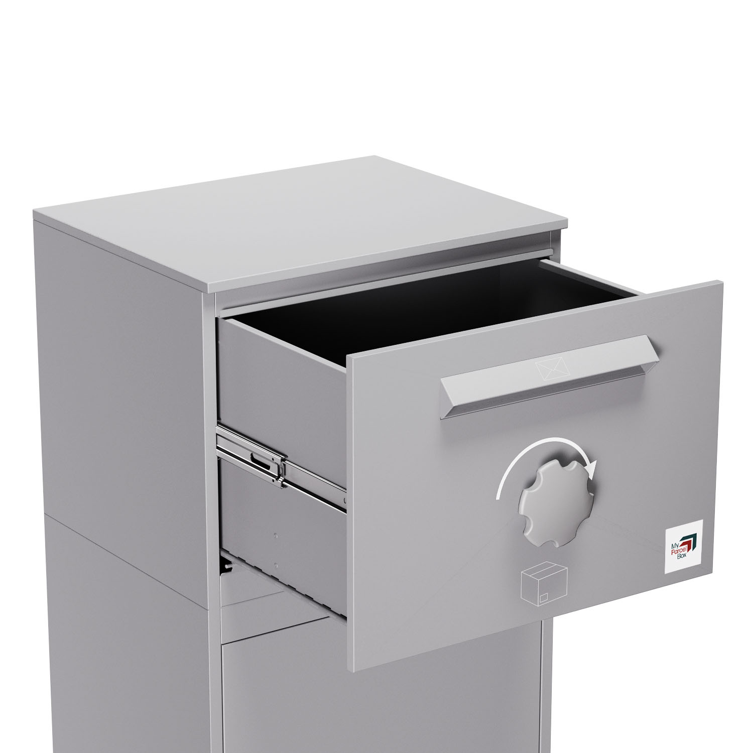 Bravios Design-Paketbox Köln XL – freistehend mit modernem Flachdach | vorderseitige Entnahme