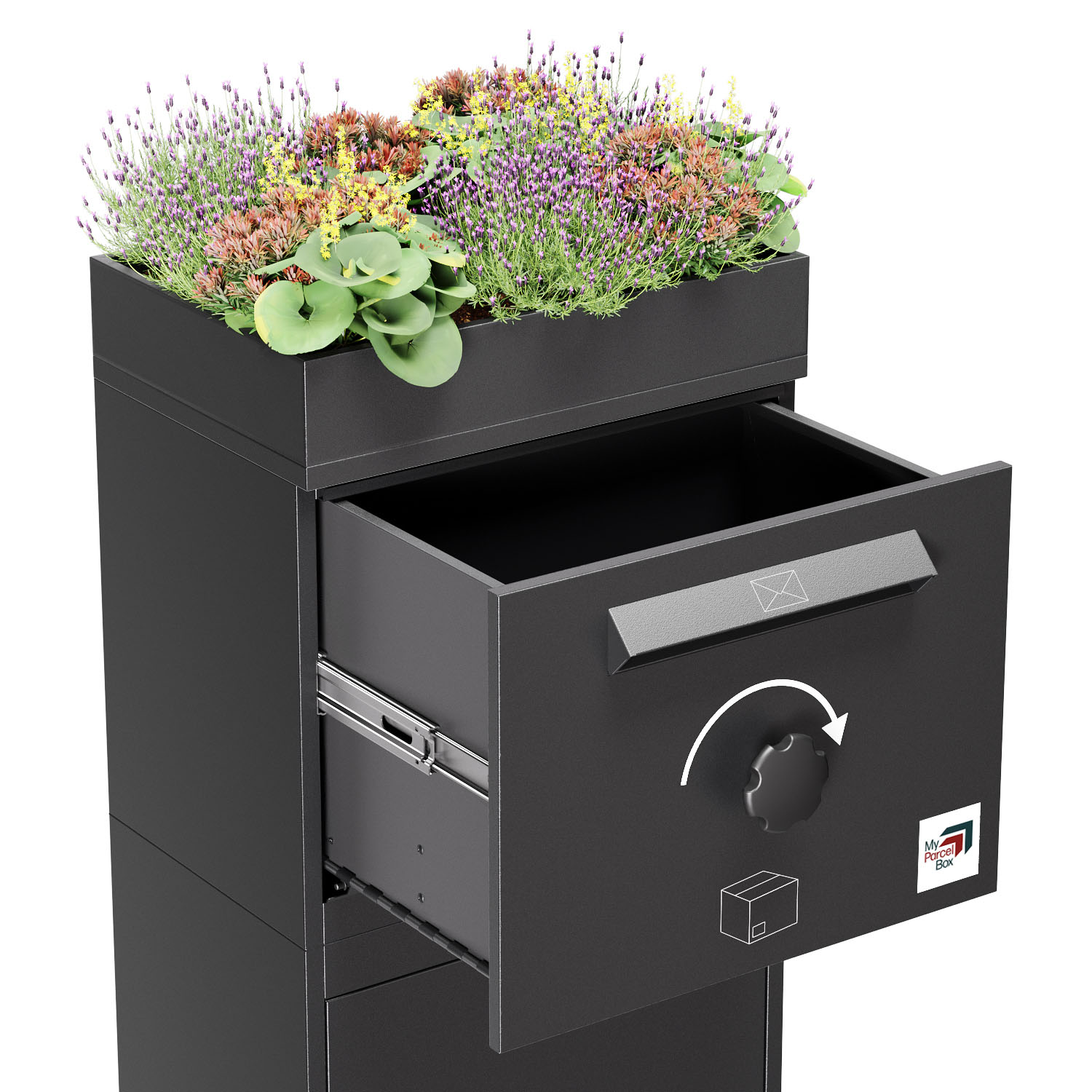 Paketbox Mannheim mit Pflanzdach - Größe L in Schwarz | freistehend