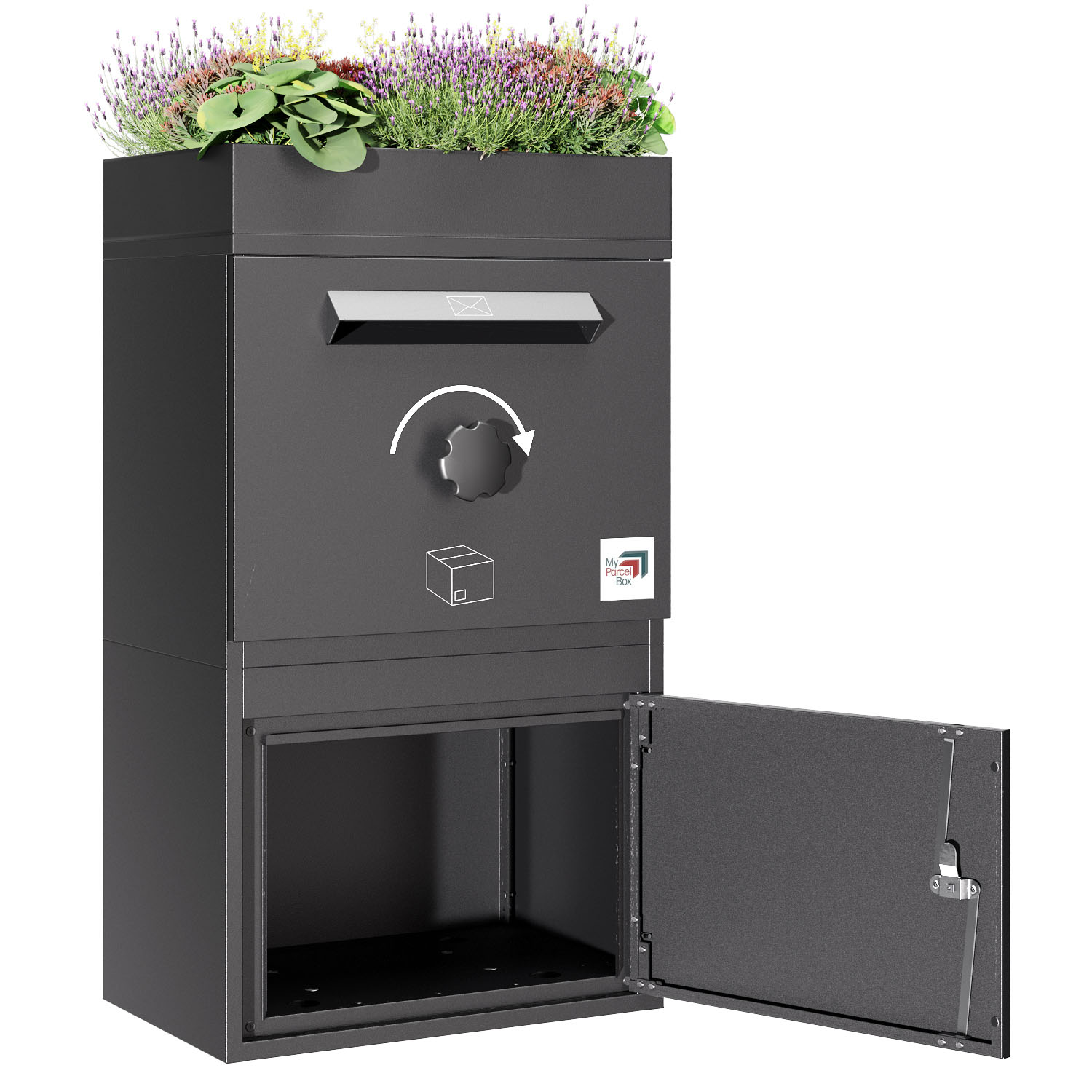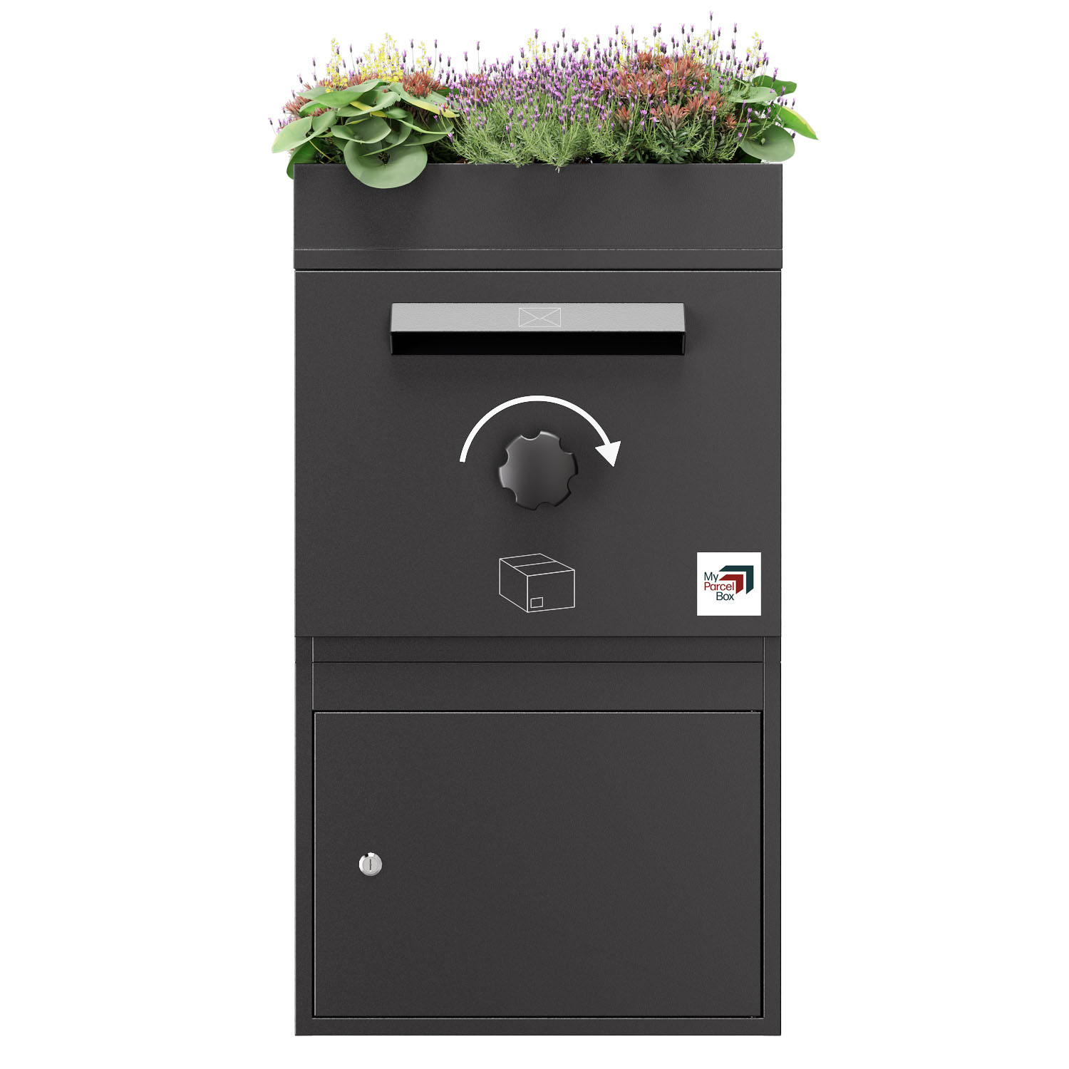Paketbox Mannheim mit Pflanzdach - Größe L in Schwarz | freistehend von bravios