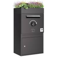 Die freistehende Paketbox "Mannheim L" von Bravios kombiniert Sicherheit, Funktionalität und stilvolles Design. Das besondere Highlight dieser Variante ist das Pflanzdach: Es kann individuell mit Blumen, Kräutern oder pflegeleichten Pflanzen gestaltet werden und fügt sich dadurch harmonisch in Ihren Garten oder Vorgarten ein. So wirkt die Paketbox weniger auffällig und gleichzeitig wie ein dekoratives Gestaltungselement. Dank der unkomplizierten, freistehenden Montage können Sie die Box flexibel vor dem Haus, im Vorgarten oder an der Einfahrt aufstellen – ganz ohne aufwendige Installation.