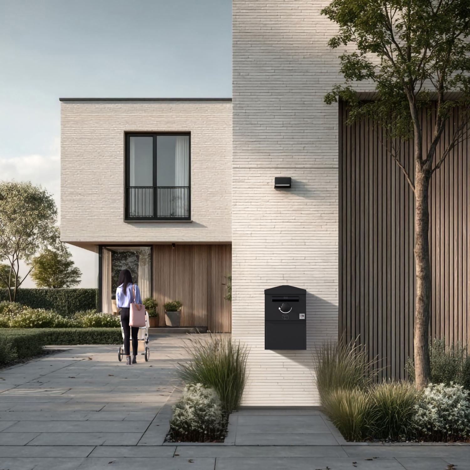 Die freistehende Paketbox "München" von Bravios ist die clevere Lösung für alle, die kleinere Pakete sicher und wettergeschützt empfangen möchten. Mit ihrem charakteristischen Spitzdach überzeugt die Box durch eine klassische, elegante Optik und sorgt gleichzeitig dafür, dass Regenwasser zuverlässig abläuft. So bleibt Ihre Paketbox lange gepflegt und widerstandsfähig – ein stilvoller Blickfang in jedem Eingangsbereich. Dank der einfachen, freistehenden Montage können Sie die Box flexibel vor Ihrem Haus, im Vorgarten oder an der Einfahrt platzieren – ganz ohne komplizierte Installation.