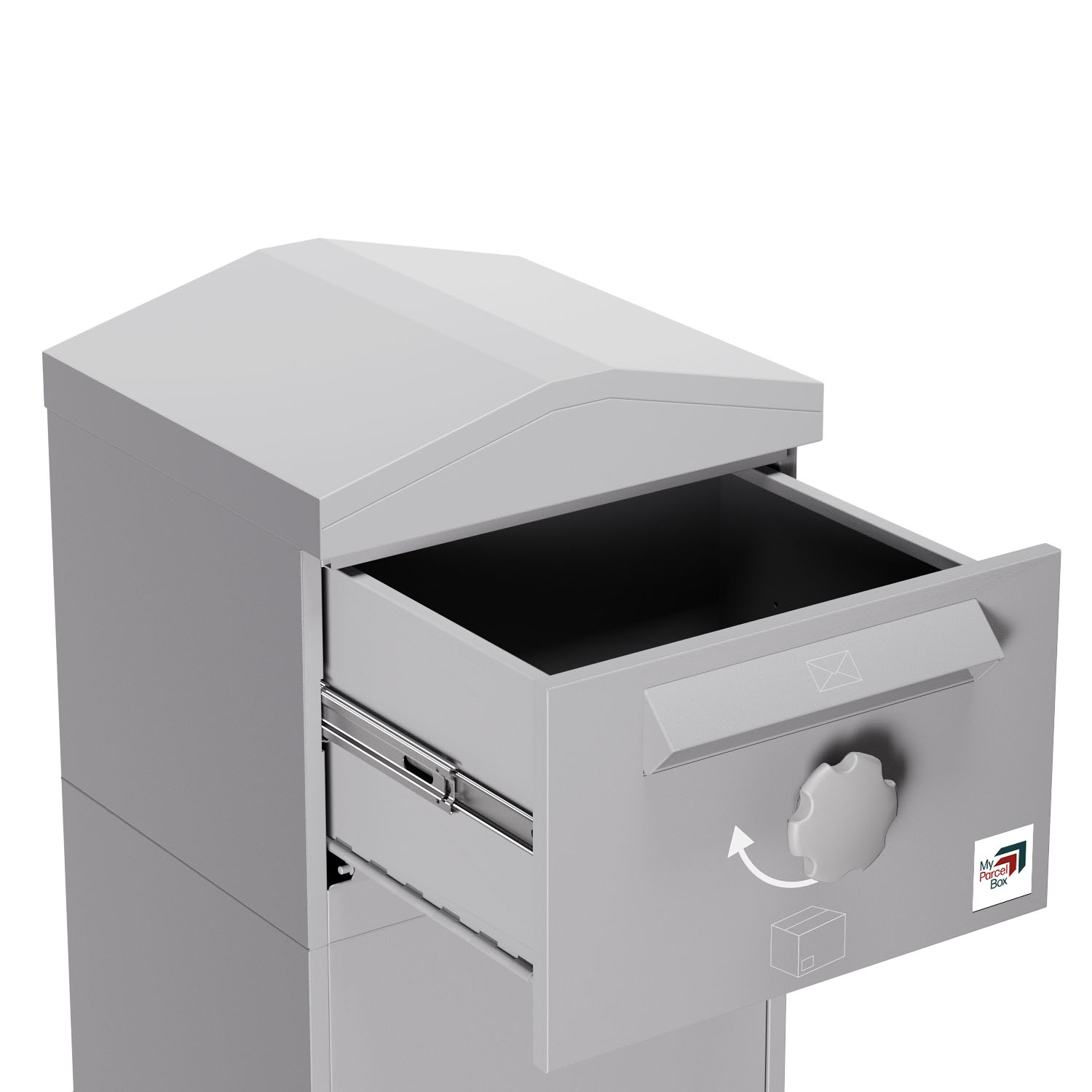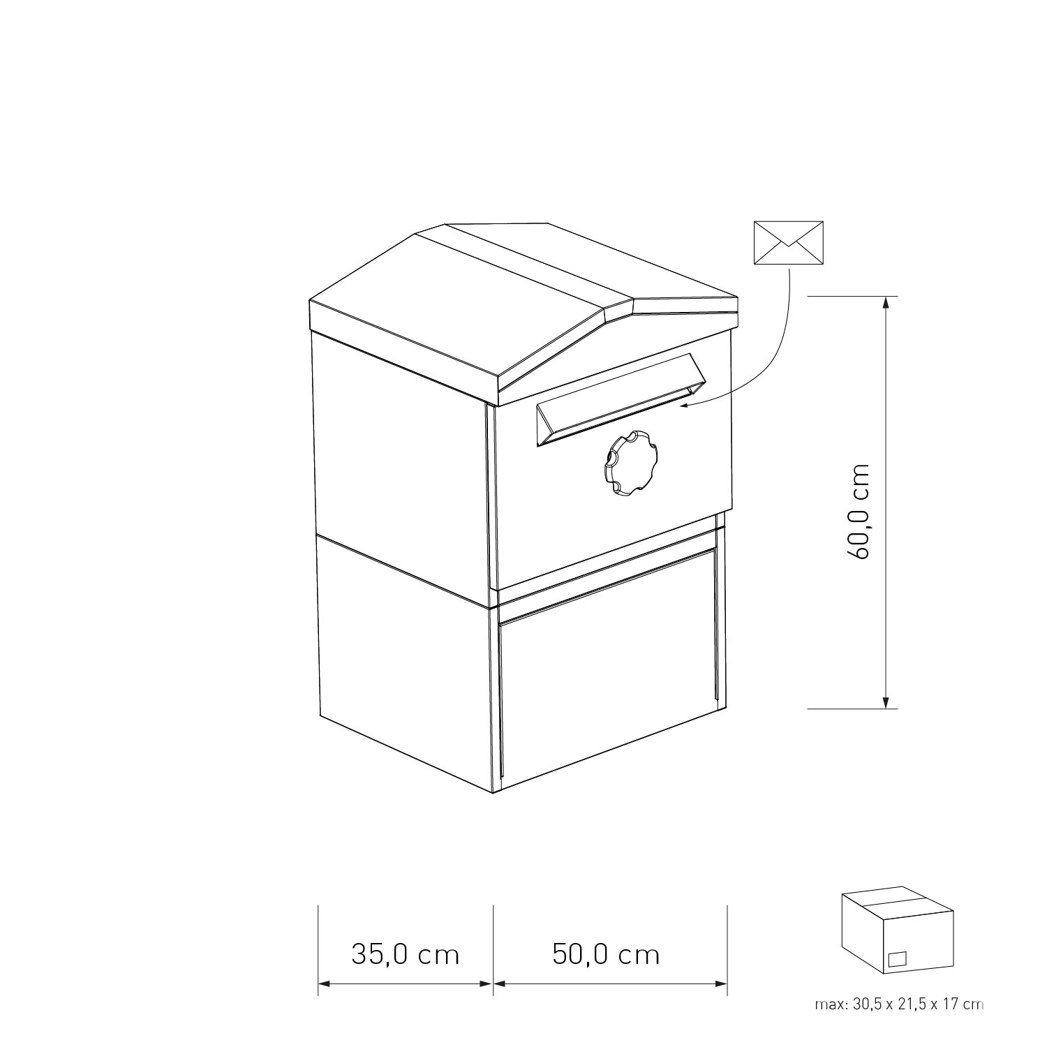 Bravios Design-Paketbox München M – freistehend mit elegantem Spitzdach | rückseitige Entnahme