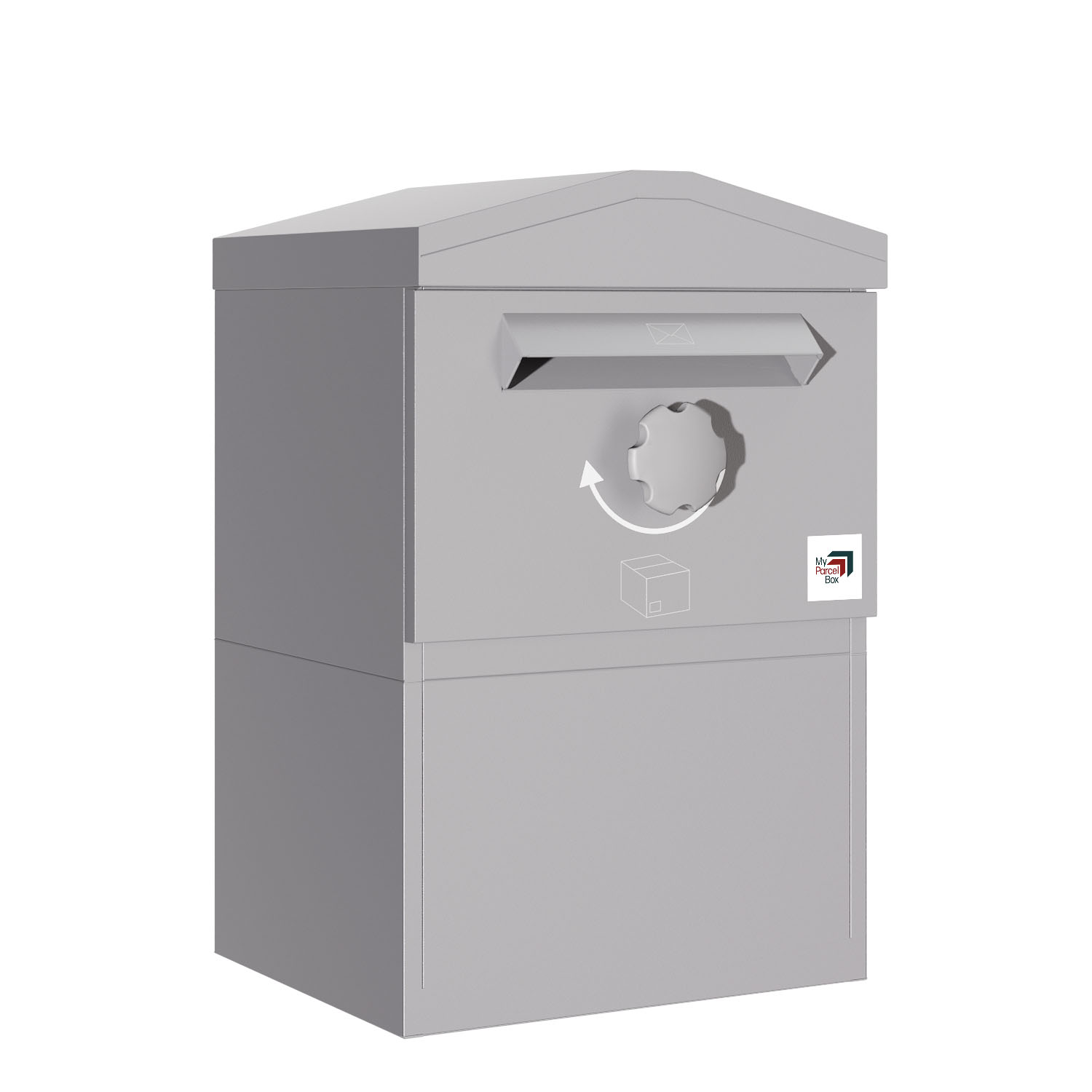 Paketbox München mit Spitzdach - Größe M in Achatgrau | rückseitige Entnahme -freistehend