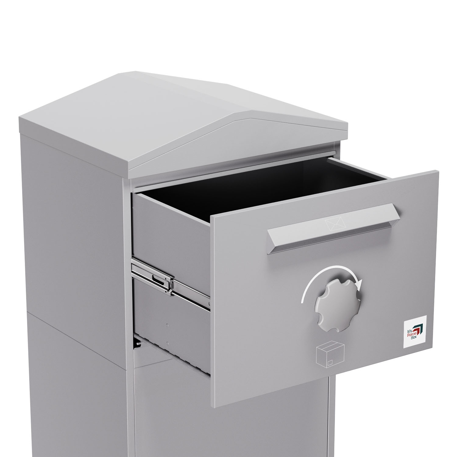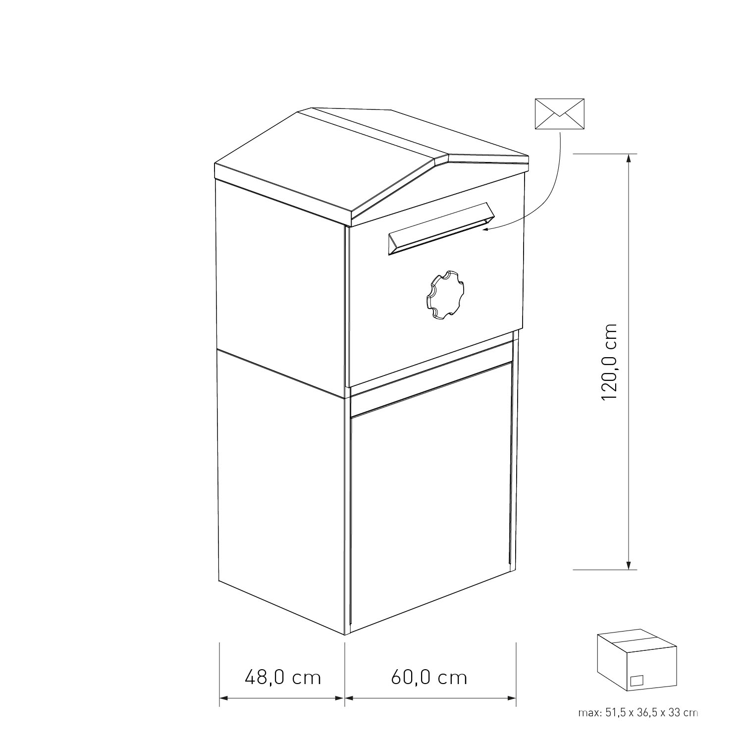 Bravios Design-Paketbox München XL – freistehend mit elegantem Spitzdach | rückseitige Entnahme