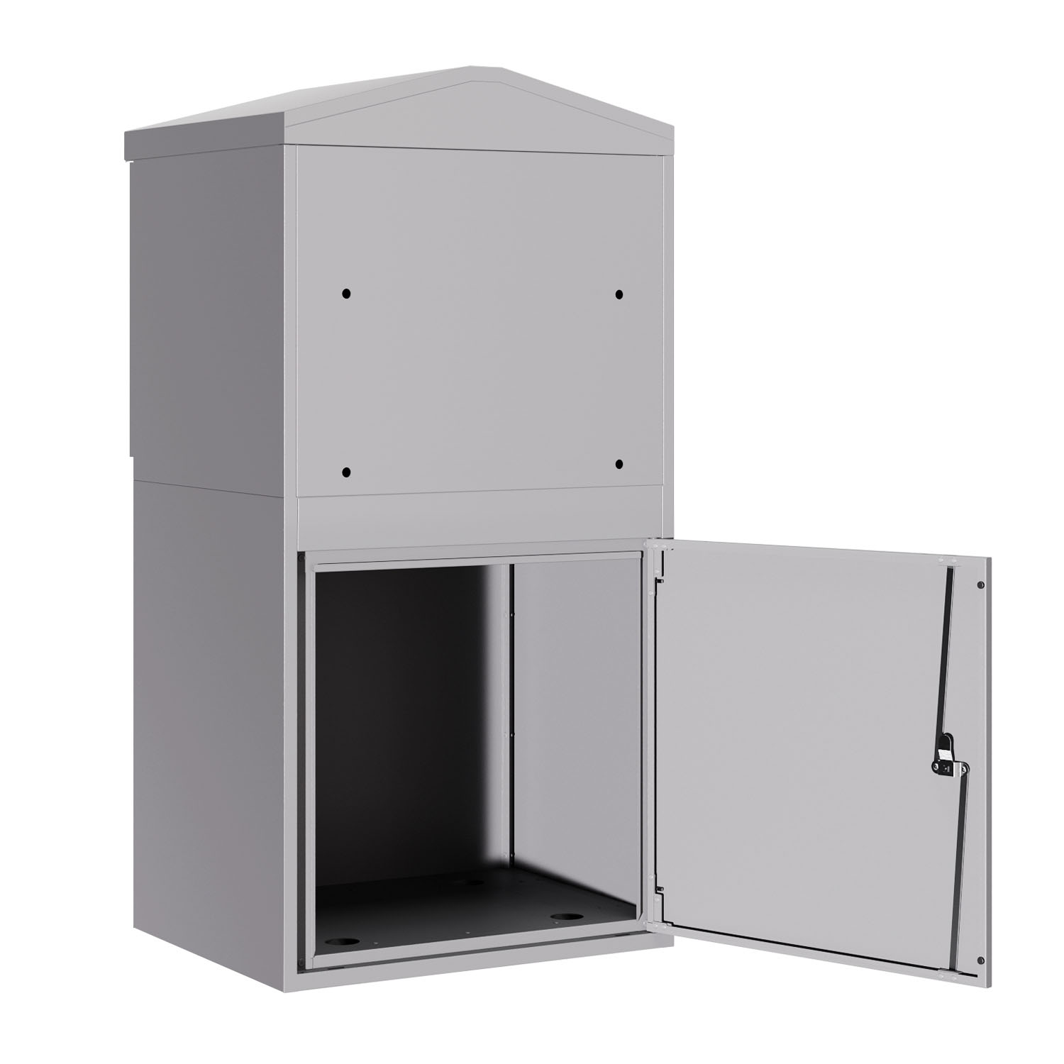 Freistehende Paketbox München mit Spitzdach in der Größe XL mit rückseitiger Entnahme von bravios