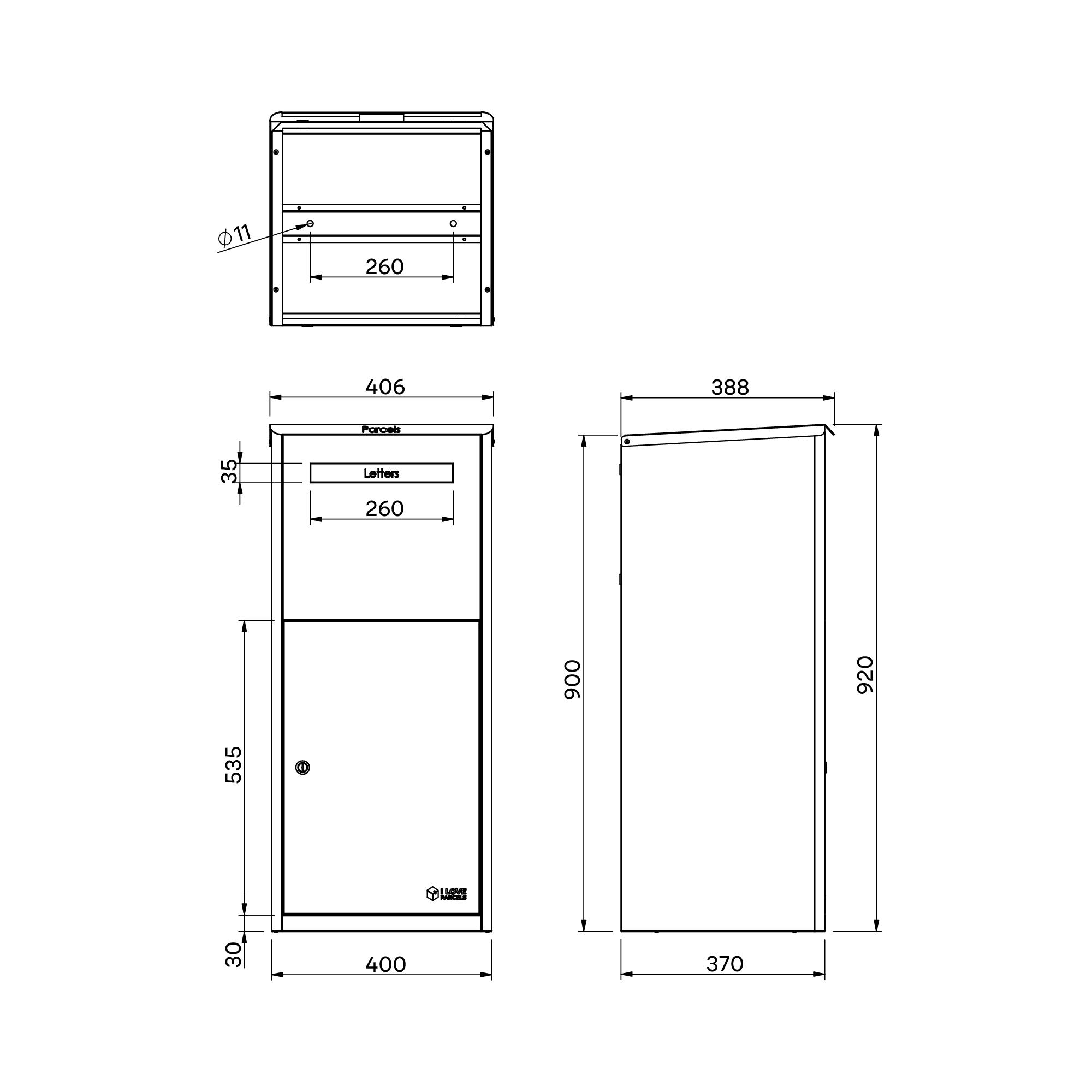 Durch vorgebohrte Löcher und mitgeliefertes Befestigungsmaterial lässt sich die Paketbox mühelos an Wand oder Boden montieren. Dank austauschbarer Vorder- und Rückseite kannst du die Zugriffrichtung perfekt an deinen Standort anpassen – maximal praktisch, bequem und sicher.