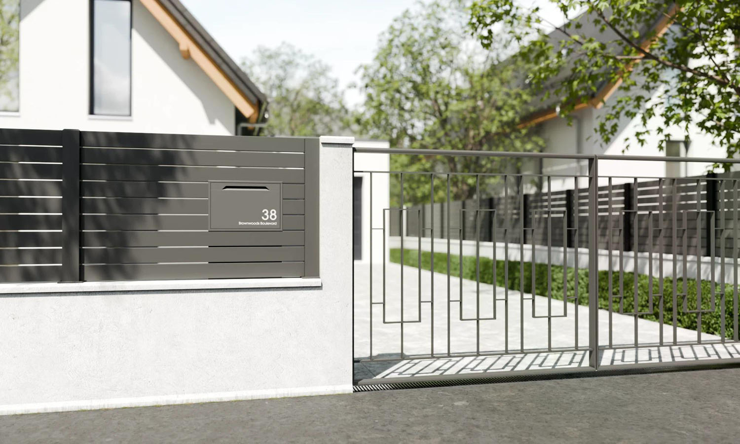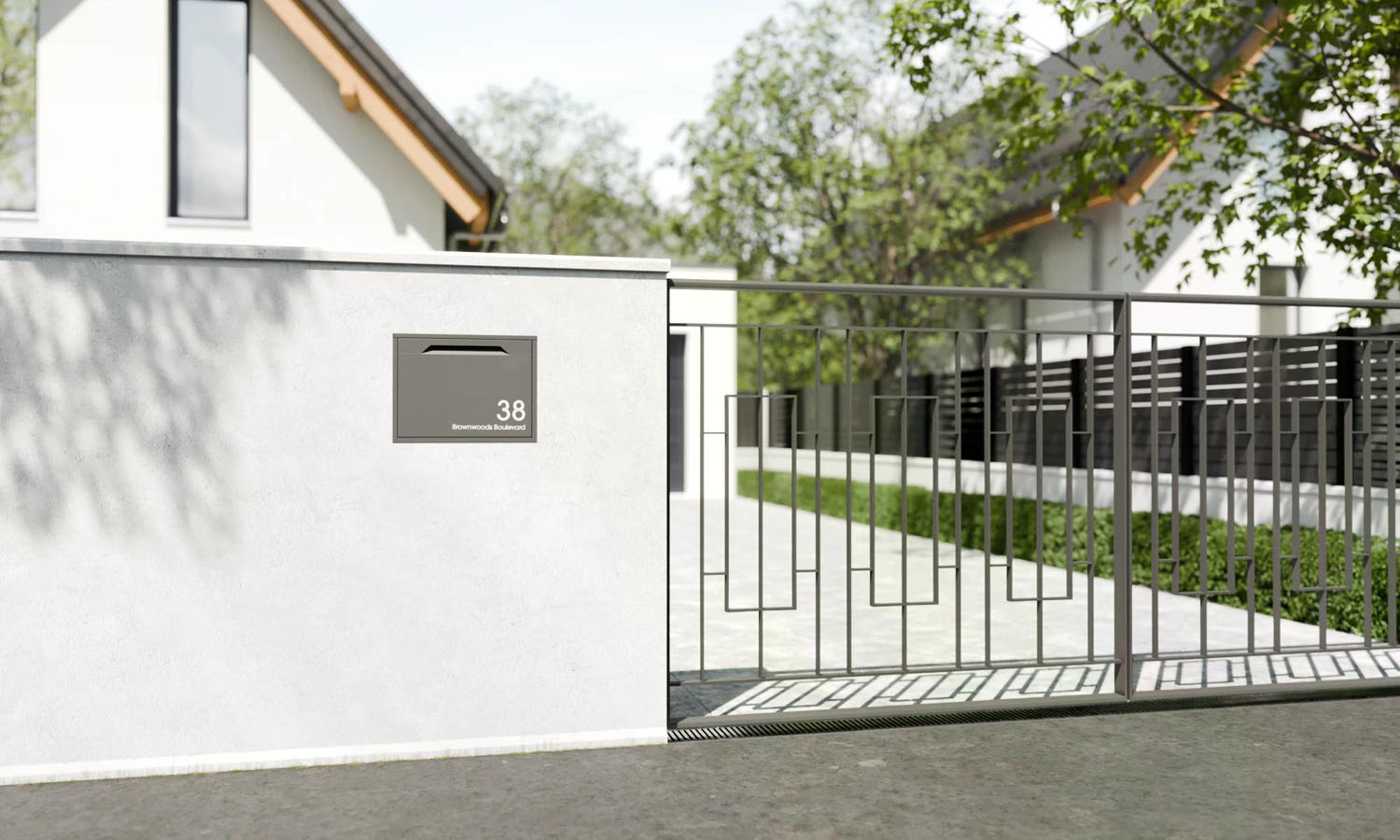 Die Chelsea Paketbox ist speziell dafür konzipiert, in Zäune, Tore oder Wände integriert zu werden. : 40 mm Einbautiefe – ideal für Standardzäune