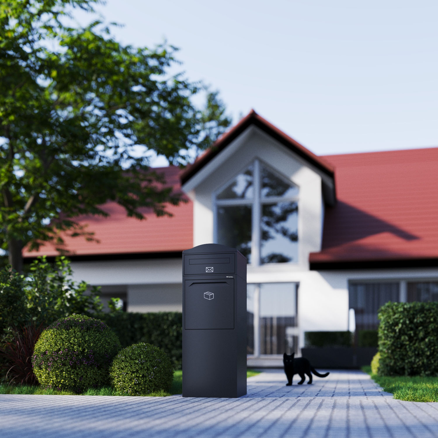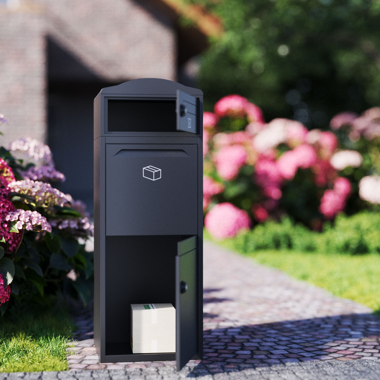 - Großzügiges Fassungsvermögen: Die Paketbox bietet ausreichend Platz für unterschiedlich große Pakete und Päckchen bis zu einer Größe von 40 x 35 x 32,5 cm.